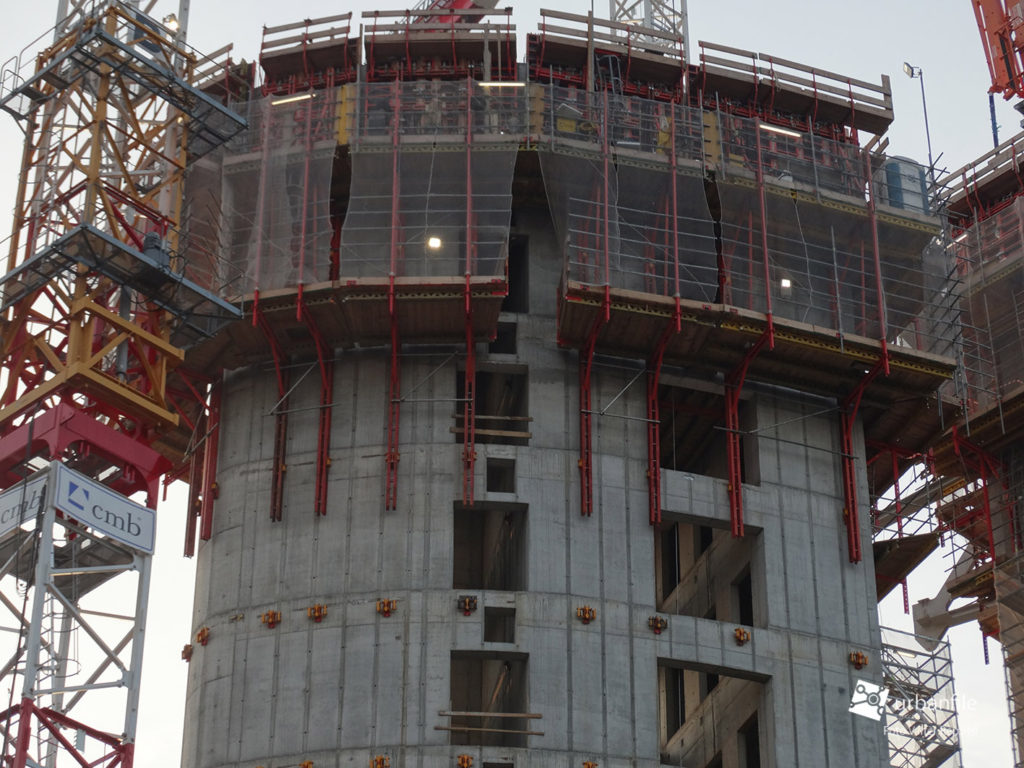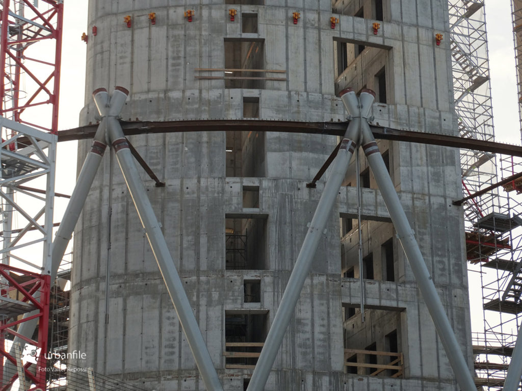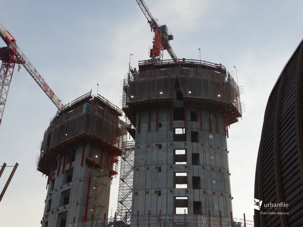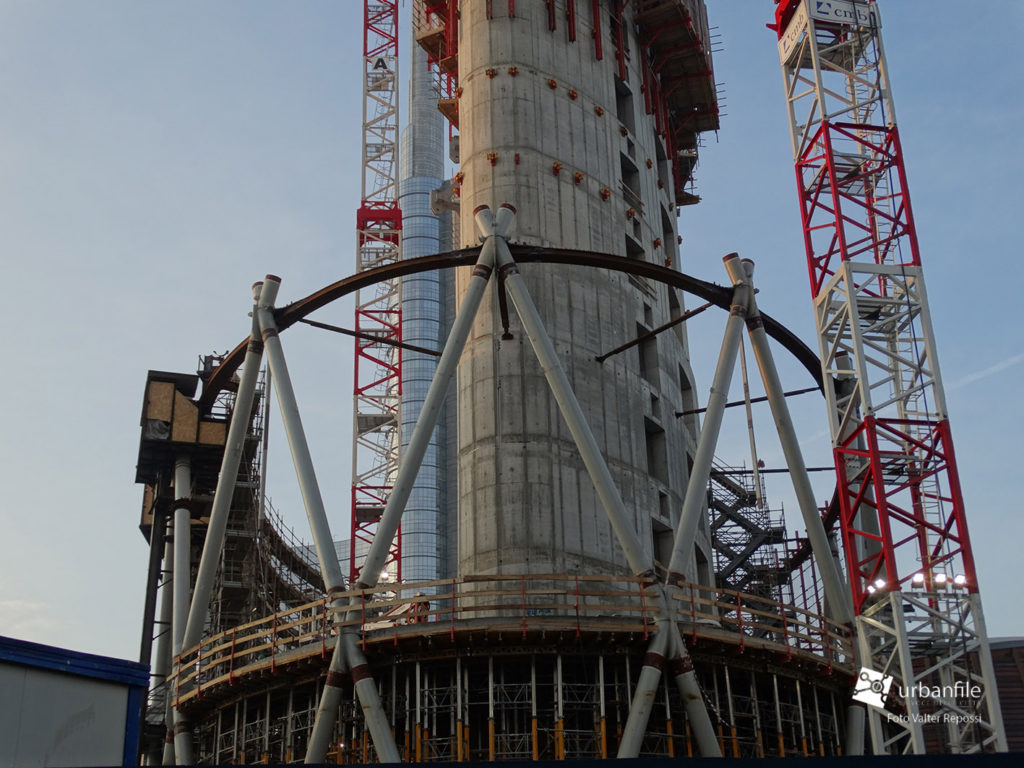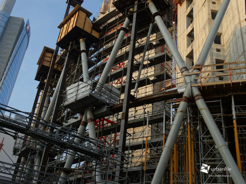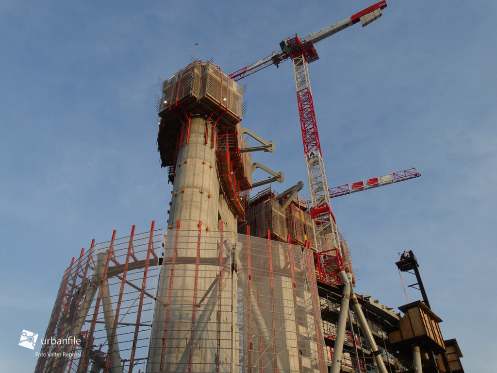 Aggiornamento di fine gennaio 2020 dal cantiere della Torre Unipol, di circa 120 metri, progettata dallo studio di Mario Cucinella Architects in costruzione a Porta Nuova in via Melchiorre Gioia.