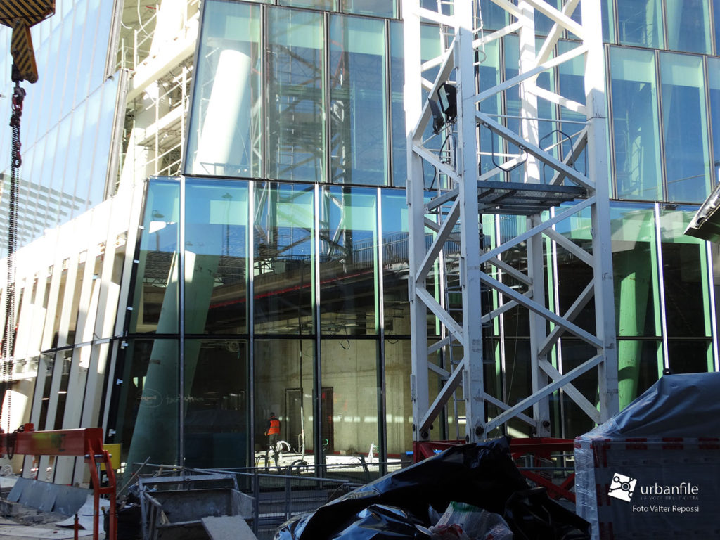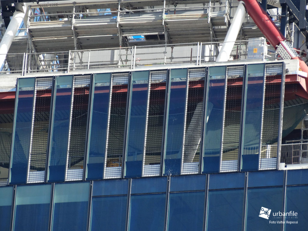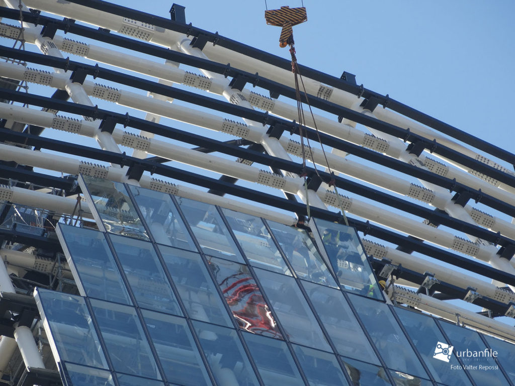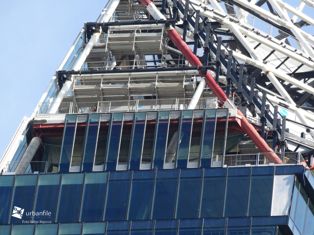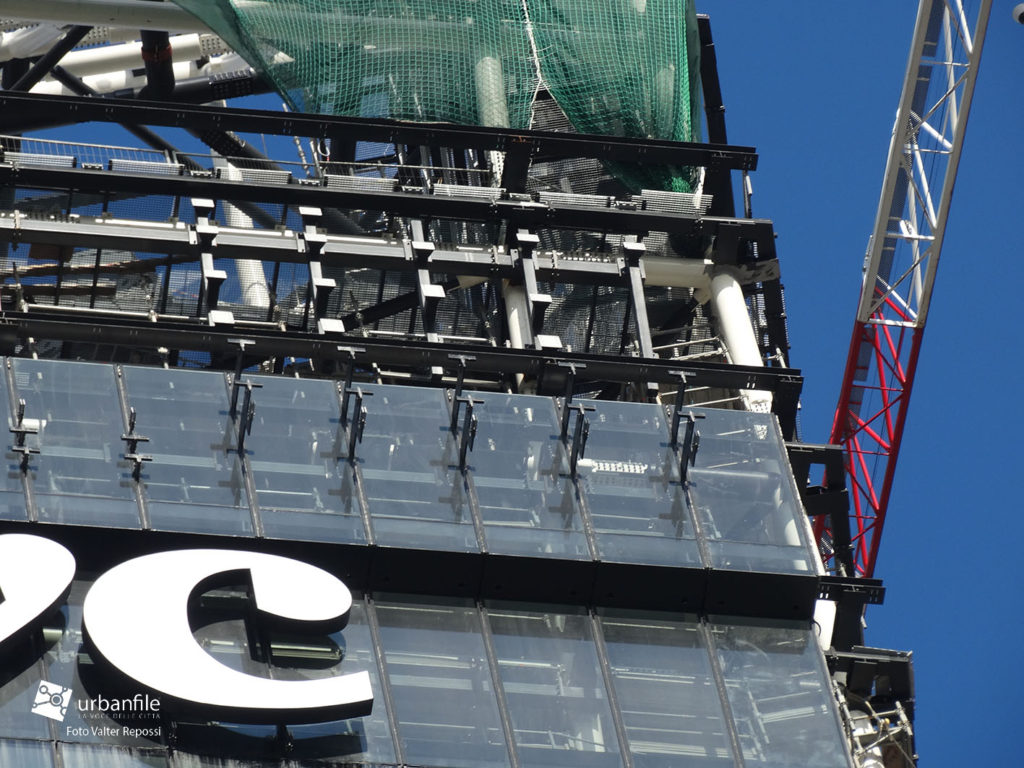 Per completare la torre progettata dall’architetto statunitense Daniel Libeskind, mancano ancora le vetrate delle facciate nella parte alta, qualche dettaglio ancora in facciata e gli interni.