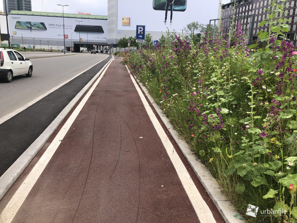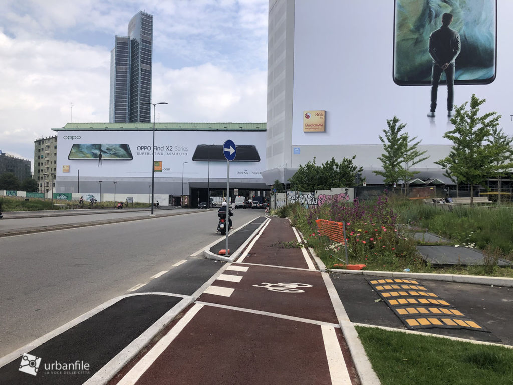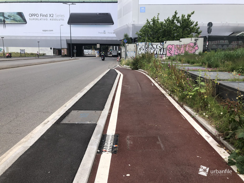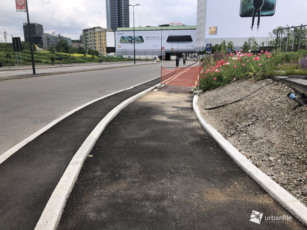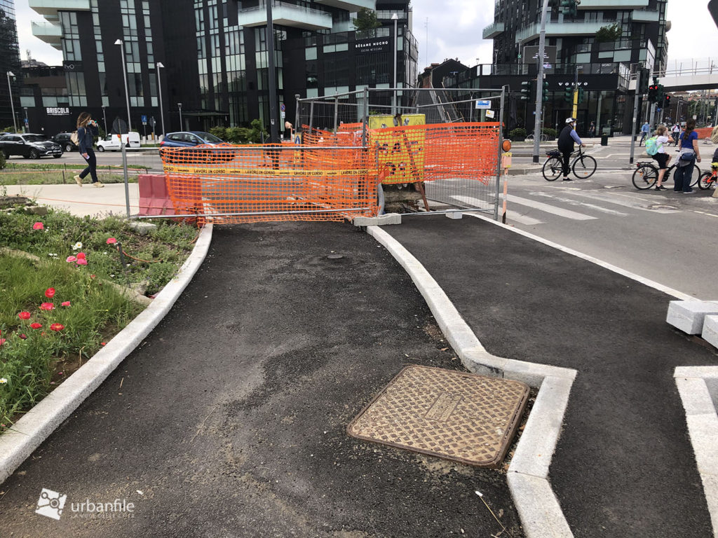 Immagine 8: sembra impossibile ma è così: la ciclabile non è collegata con il parco adiacente, collegamento che tornerebbe molto utile per raggiungere piazza Gae Aulenti/Corso Como o il quartiere Isola.