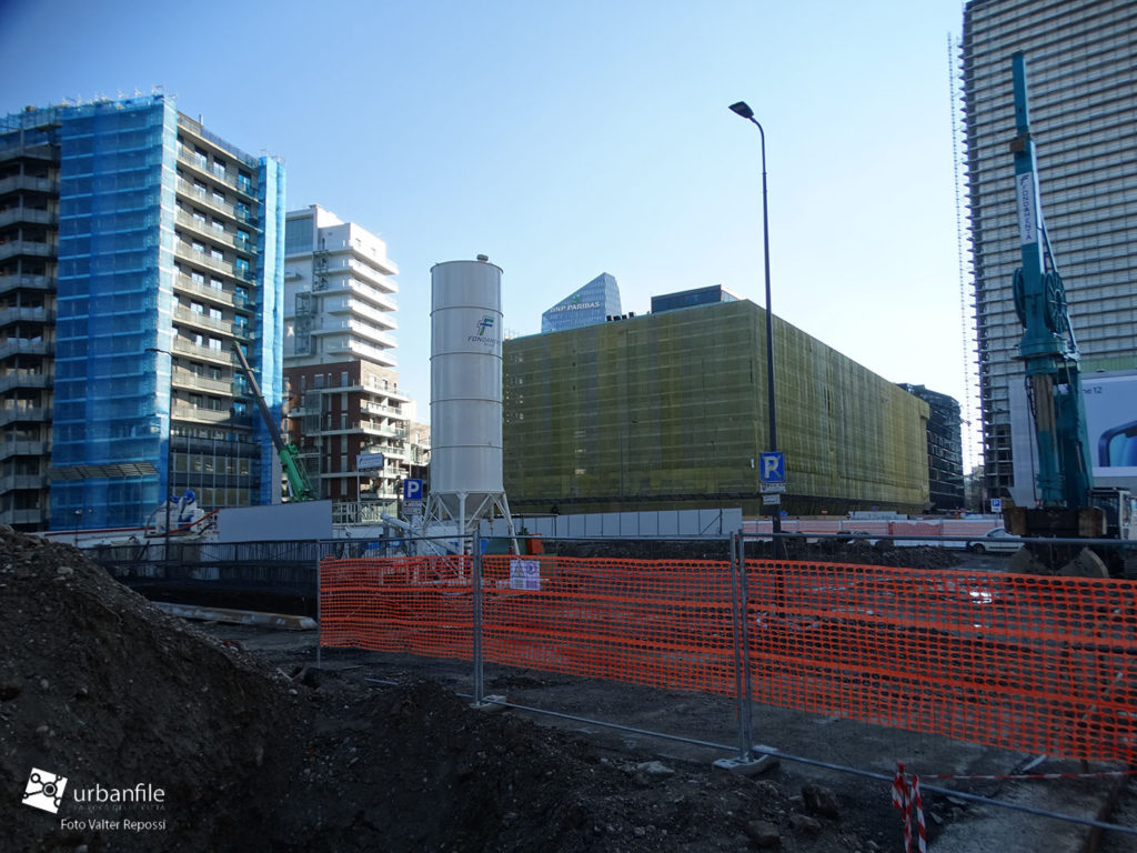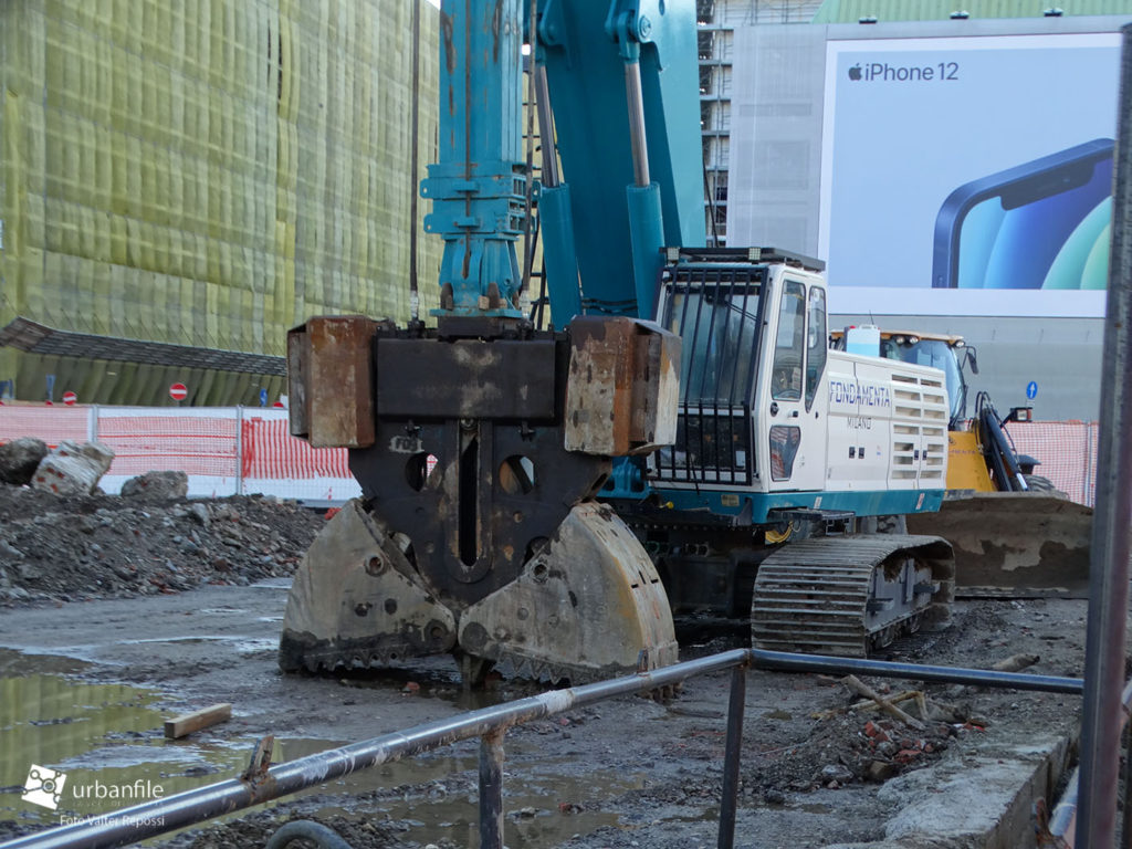 Come si vede hanno cominciato a scavare sul perimetro per le paratie, di quella che sarà la parte sotterranea della torre, in modo da poi creare una parete rinforzata e scavare all’interno di questo perimetro senza cedimenti del terreno circostante.