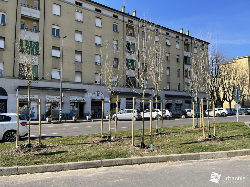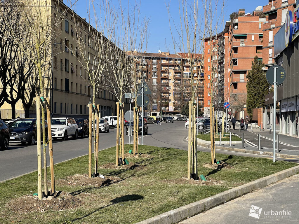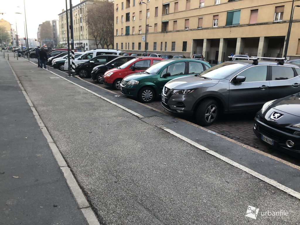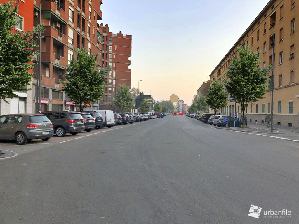 Peccato che l’intervento sia stato circoscritto alla sola parte iniziale, quella appunto all’incrocio con via Palmanova. Come sempre, via eccezionalmente ampia che potrebbe ospitare, tra una serie di auto parcheggiate e le altre un albero, come abbiamo mostrato nel fotomontaggio qui di seguito.