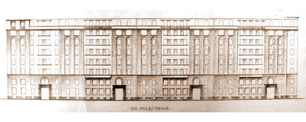 In via Palestrina, nel distretto di Loreto, si erge imponente un grande caseggiato razionalista che non passa certo inosservato: si tratta della Grande Casa Civile o più conosciuta come la “Casa Rossa” realizzata su progetto di Ulderico Tononi e terminata nel 1935.