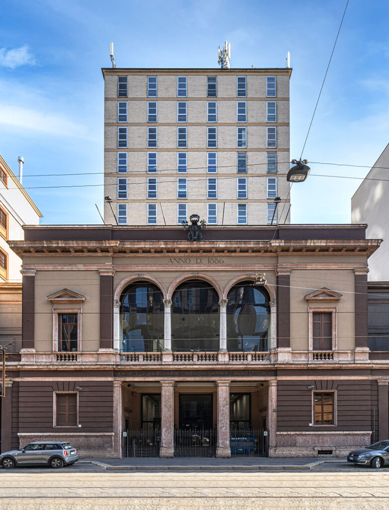 Progettata nel 1950 da Achille e Pier Giacomo Castiglioni e da Luigi Fratino, in seguito ai bombardamenti del 1943 che avevano colpito il Palazzo della Permanente, la torre è composta da 5.000 mq di spazi adibiti a uffici; i lavori mirano a preservare, oltre all’attuale destinazione d’uso, il valore storico dell’edificio attraverso una rispettosa ristrutturazione in chiave contemporanea, che prevede anche un adeguamento sismico della struttura e una riqualificazione globale a livello energetico ed impiantistico.