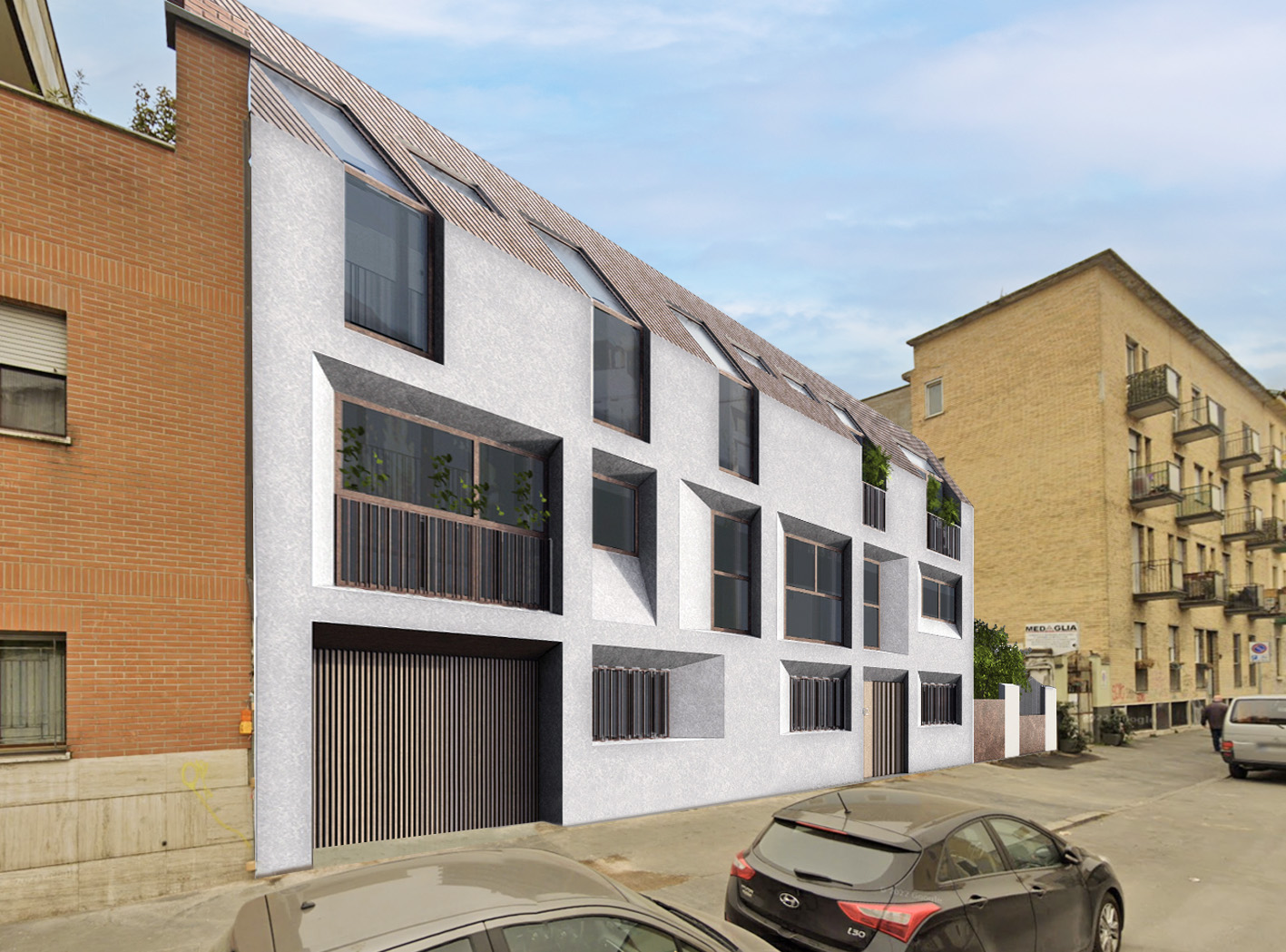 Si tratta di T12, un progetto dello Studio Sacchi Architetti. Un edificio di due piani dall’aspetto moderno e “industrial” che si confà alla zona. Ampie finestre di diverse dimensioni movimentano la facciata su via Tosi, mentre all’interno si trovano ampi terrazzi.