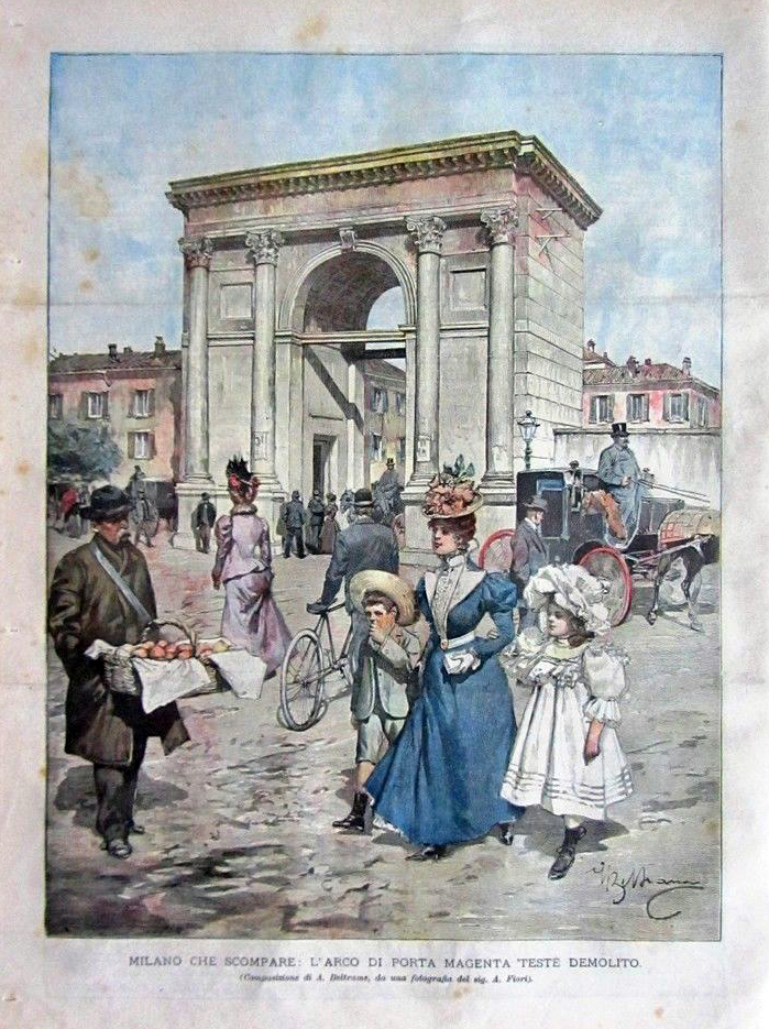 L’8 giugno 1859, Napoleone III e Vittorio Emanuele II attraversarono l’Arco di Porta Vercellina dopo la vittoria nella battaglia di Magenta, durante la Seconda Guerra d’Indipendenza. In loro onore, il 26 ottobre 1860 la porta venne ribattezzata “Porta Magenta” e il “Corso di Porta Vercellina” divenne “Corso Magenta”. Tuttavia, con l’abbattimento delle mura spagnole tra il 1885 e il 1897, anche l’Arco di Porta Vercellina fu demolito, lasciando oggi solo poche fotografie d’epoca come memoria.