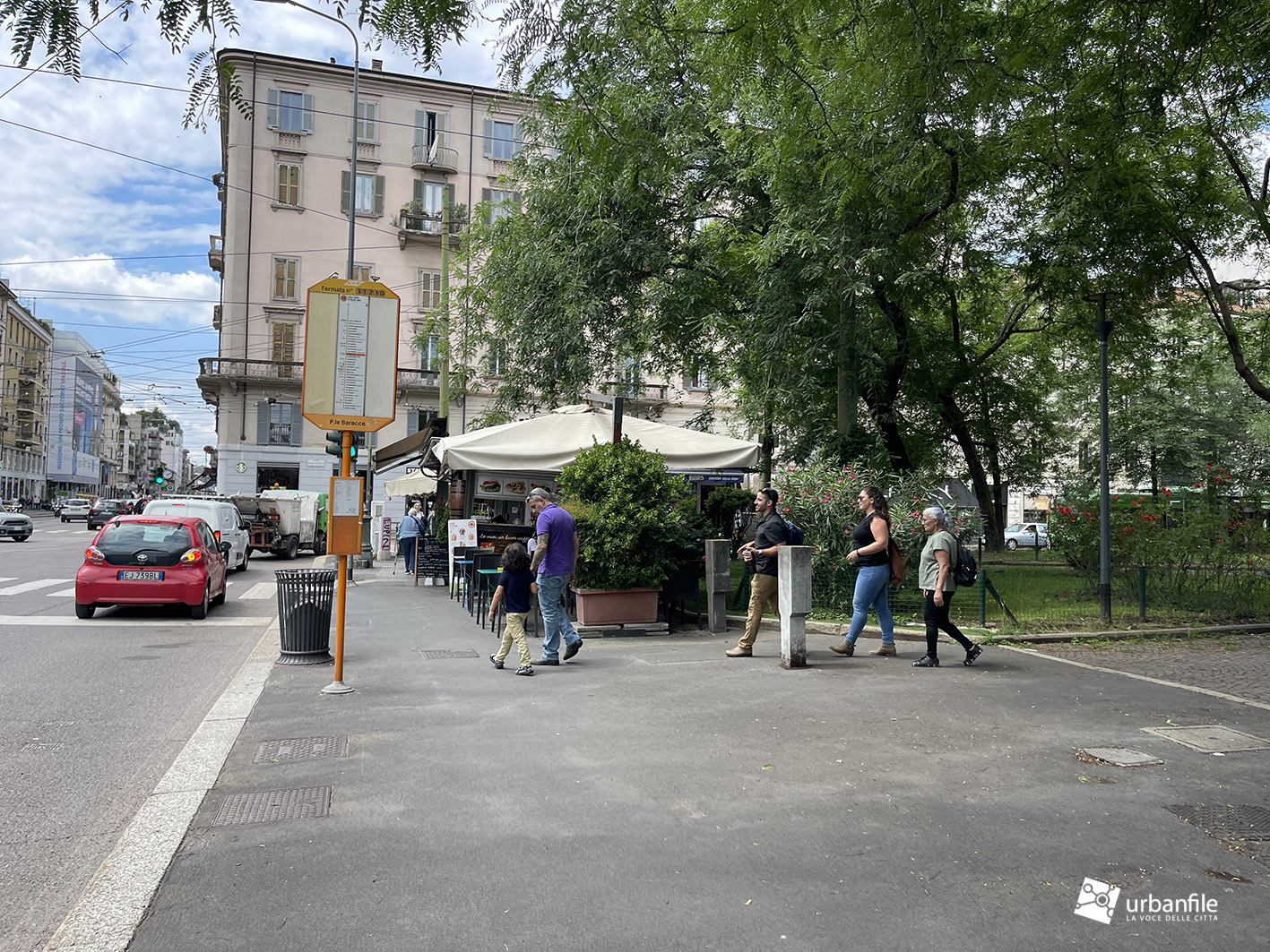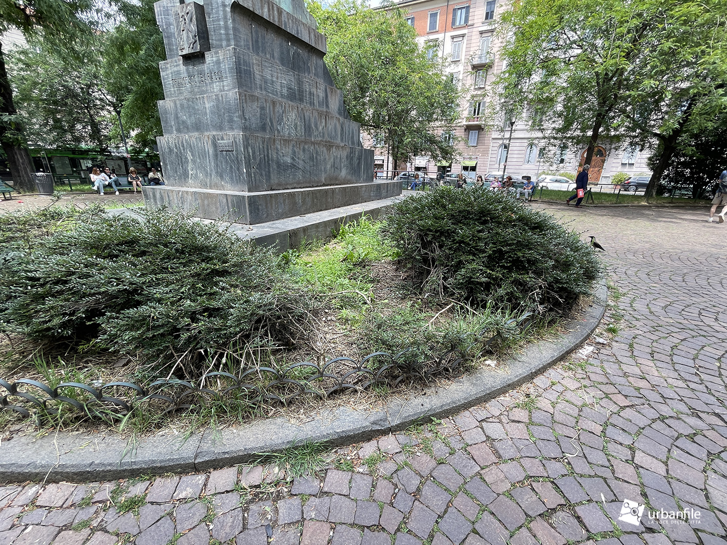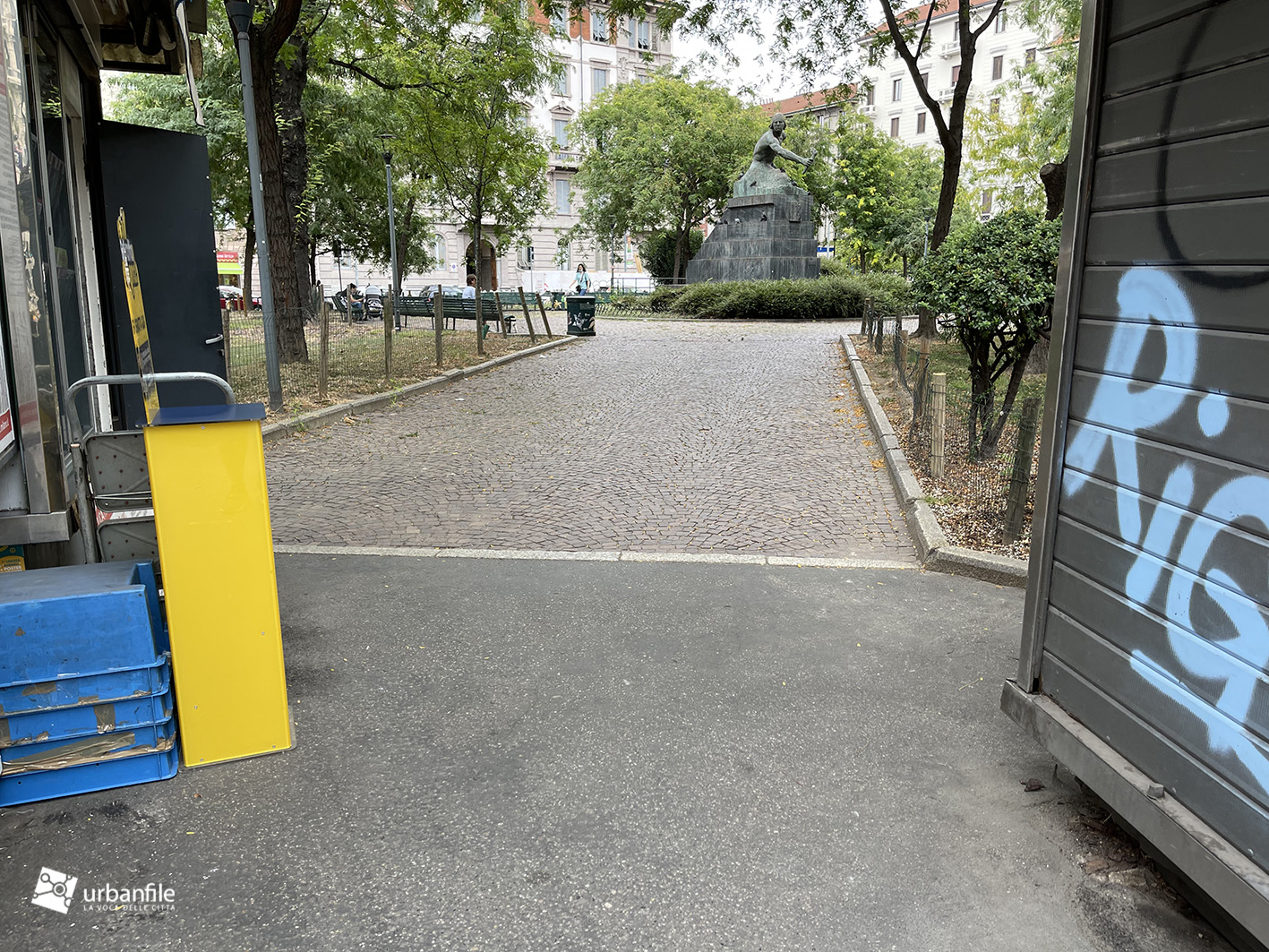 L’isola centrale come dicevamo è a giardino formata da quattro spicchi a verde separati da piccoli vialetti, ma le aiuole mostrano un po’ di segni di incuria e avrebbero bisogno di maggiore attenzione da parte dei giardinieri comunali. Sul lato meridionale dell’isola centrale sorgono chioschi e edicole, molte delle quali appaiono ormai fatiscenti e persino inclinate, ostacolando la vista del giardino per chi percorre il tratto tra Corso Vercelli e Corso Magenta. Non sarebbe il caso di ridare una forma migliore a questi manufatti e eliminare quelli in disuso?