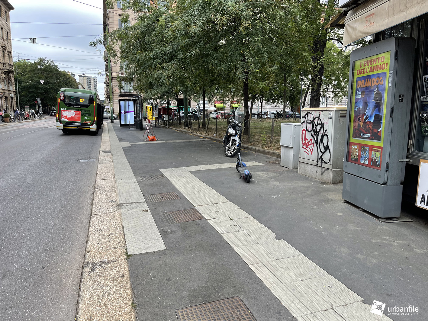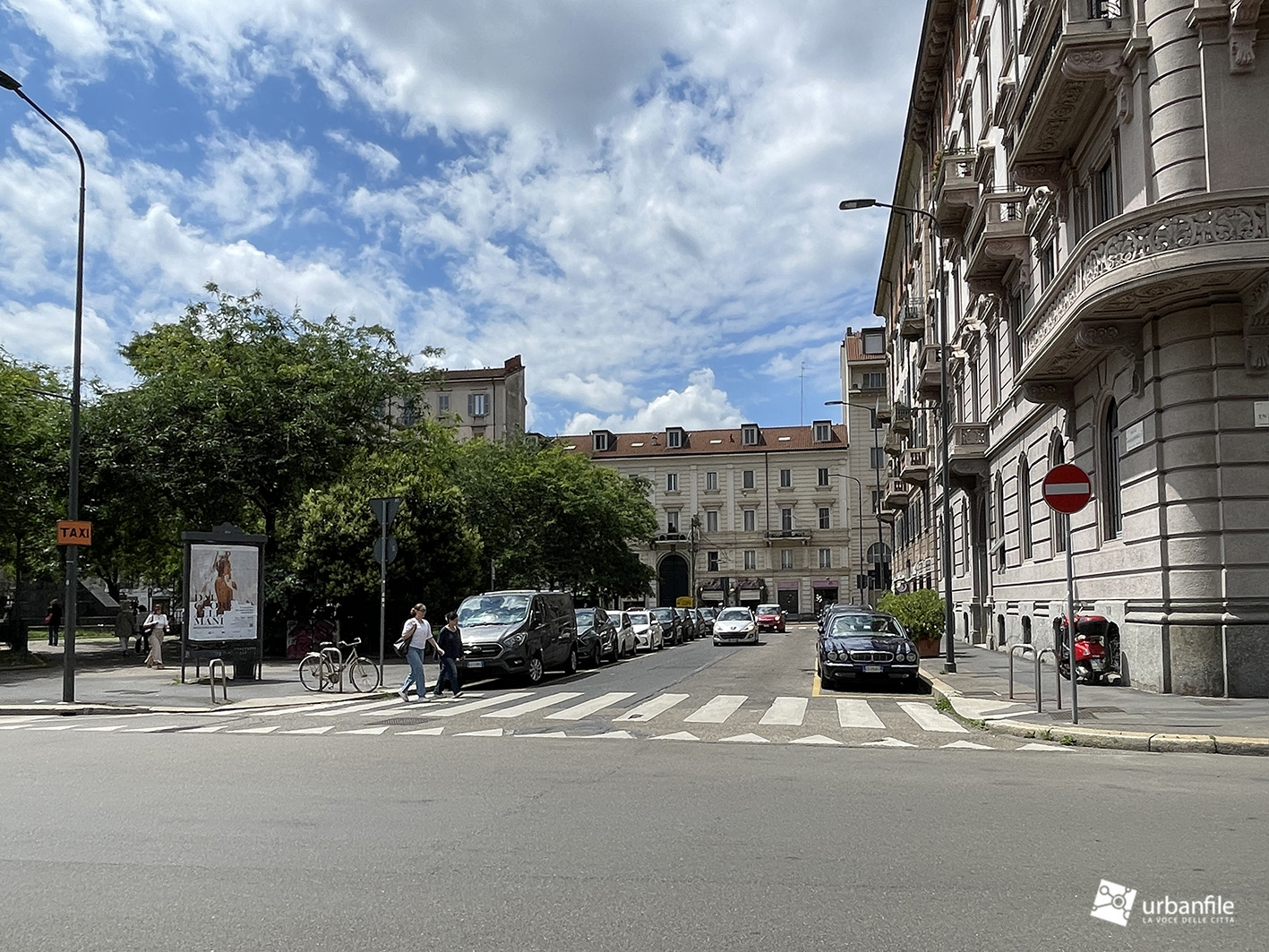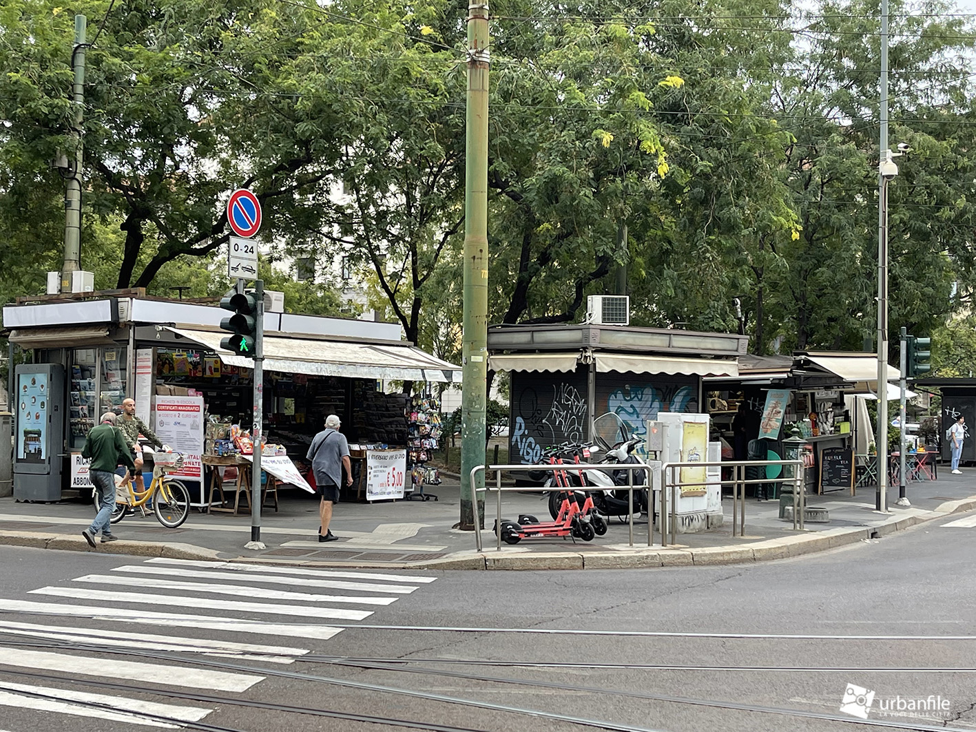 L’isola centrale come dicevamo è a giardino formata da quattro spicchi a verde separati da piccoli vialetti, ma le aiuole mostrano un po’ di segni di incuria e avrebbero bisogno di maggiore attenzione da parte dei giardinieri comunali. Sul lato meridionale dell’isola centrale sorgono chioschi e edicole, molte delle quali appaiono ormai fatiscenti e persino inclinate, ostacolando la vista del giardino per chi percorre il tratto tra Corso Vercelli e Corso Magenta. Non sarebbe il caso di ridare una forma migliore a questi manufatti e eliminare quelli in disuso?
