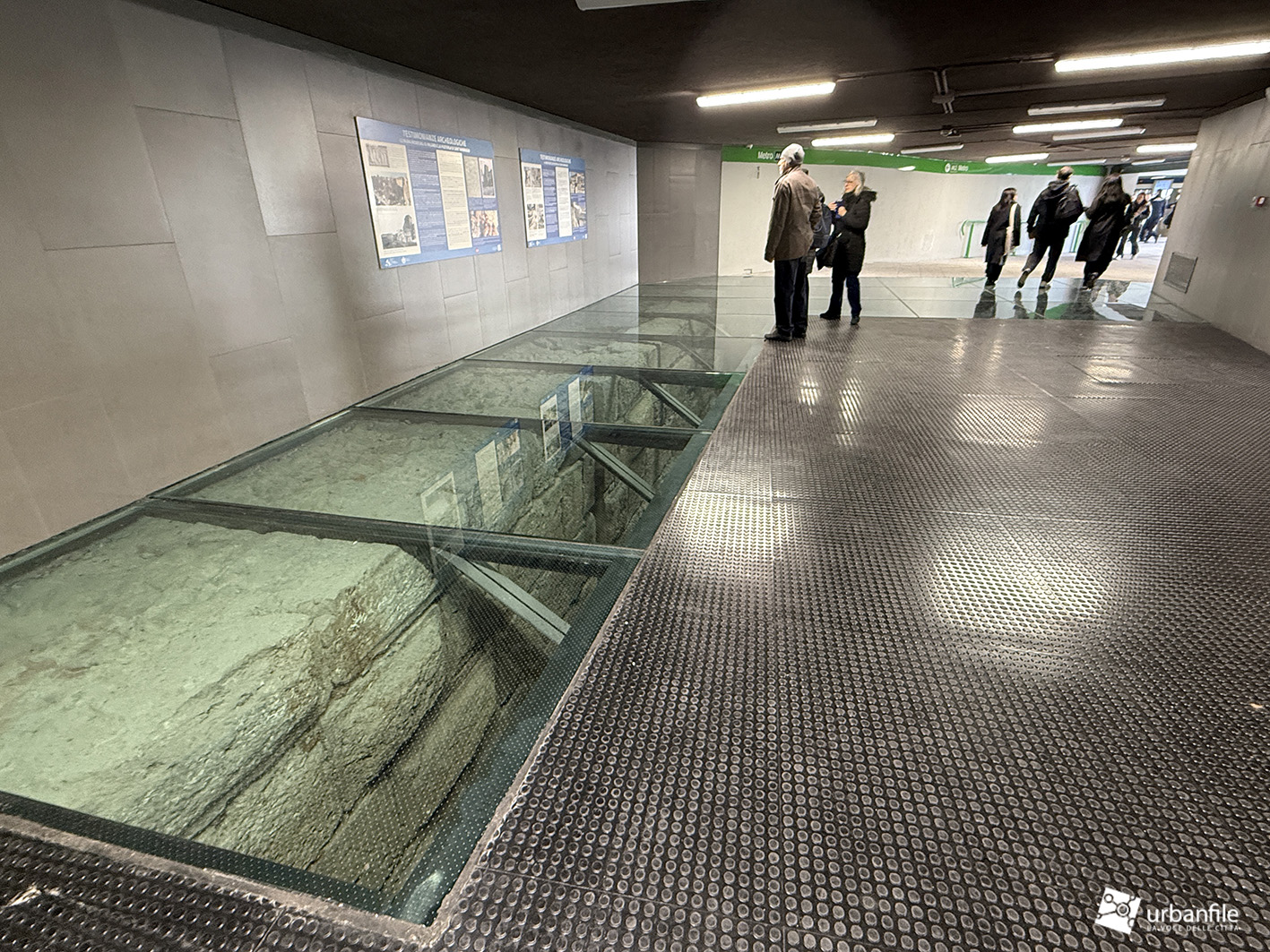 Ora, grazie all’installazione di pannelli trasparenti, i viaggiatori possono ammirare questi resti storici percorrendo il tunnel.