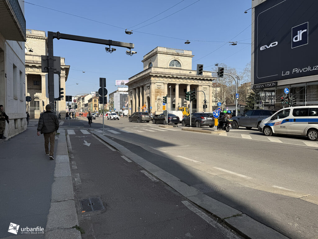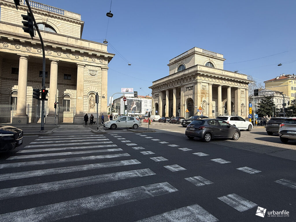 Occasione persa per fare una riqualificazione della piazza sensata, e rendere le porte una sorta di rotatoria, e armonizzare il traffico, dato che il 90% dei veicoli provenienti e diretti in corso Buenos Aires provengono e vanno sulla circonvallazione e non verso corso Venezia, si potrebbe eliminare il passaggio attraverso le porte, eliminando quell’intersezione non avremmo auto che tagliano l’incrocio svoltando dove non devono e auto che bloccano l’incrocio perché ferme in uno dei 6 semafori di intersezione.