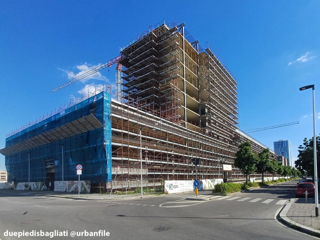 Era da febbraio che non vi aggiornavamo con nuove foto dal cantiere per i nuovi edifici universitari di Viale dell’Innovazione, tra via Stella Bianca e via Mario Fubini alla Bicocca. Cantiere rimasto fermo per alcuni anni, tanto che lo davamo spacciato ormai, perché le attività si erano interrotte bruscamente nell’aprile 2022 (nel mese di settembre 2022 il nostro ultimo aggiornamento prima della ripresa), ora ripreso a gran ritmo dalla scorsa estate.