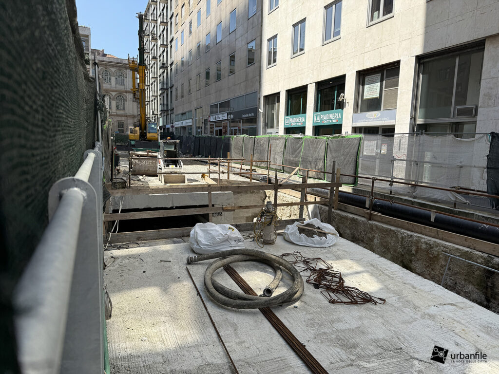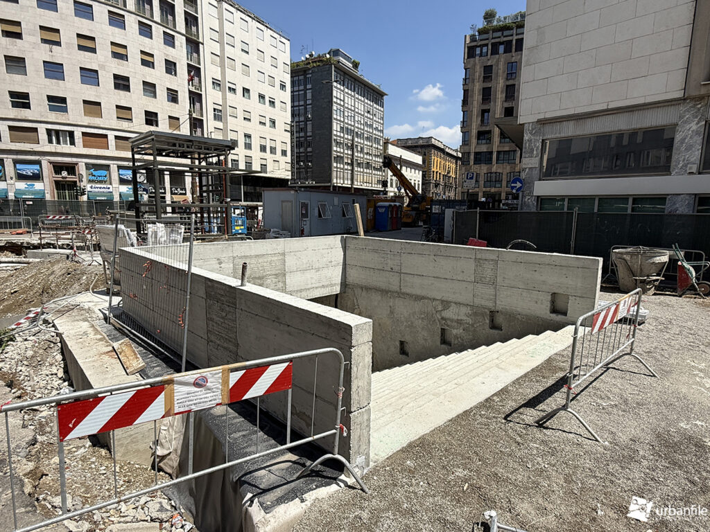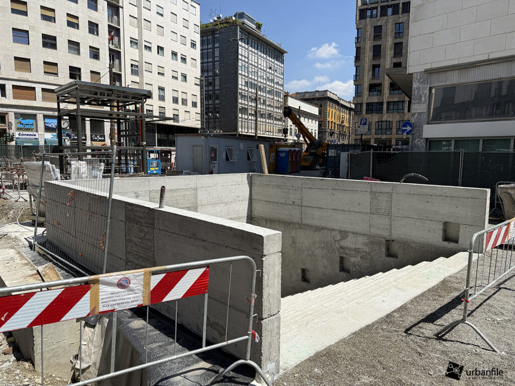 Passiamo ora in via Pantano, dove sono in costruzione le nuove uscite M3 Missori con tanto di torretta ascensore.