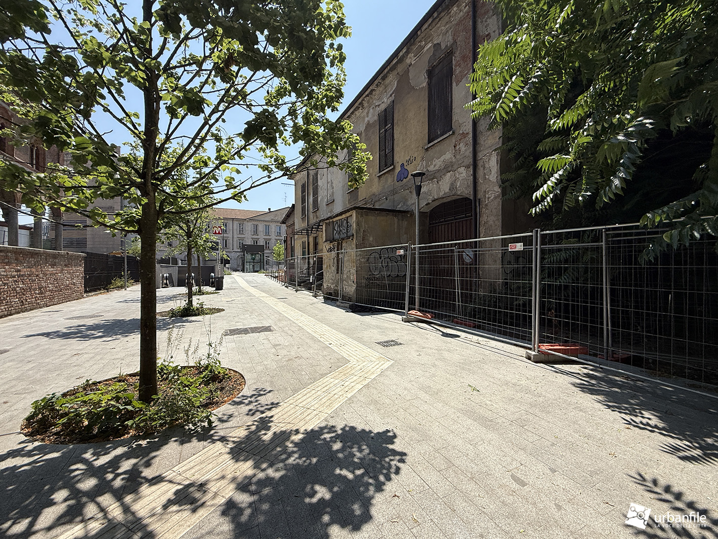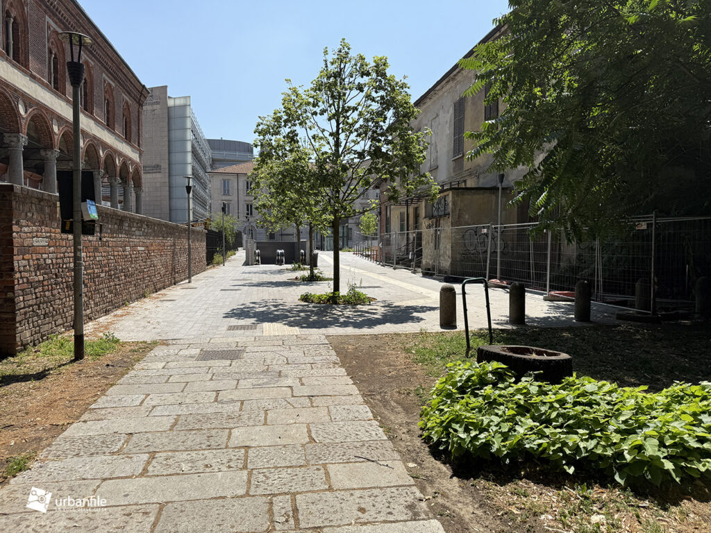 Passiamo ora al percorso pedonale più affascinante e suggestivo del centro di Milano, a dire il vero ancora privo di un nome, che da Largo Francesco Richini conduce al nuovo spiazzo dove si trovano le uscite della M4 Sforza Policlinico.