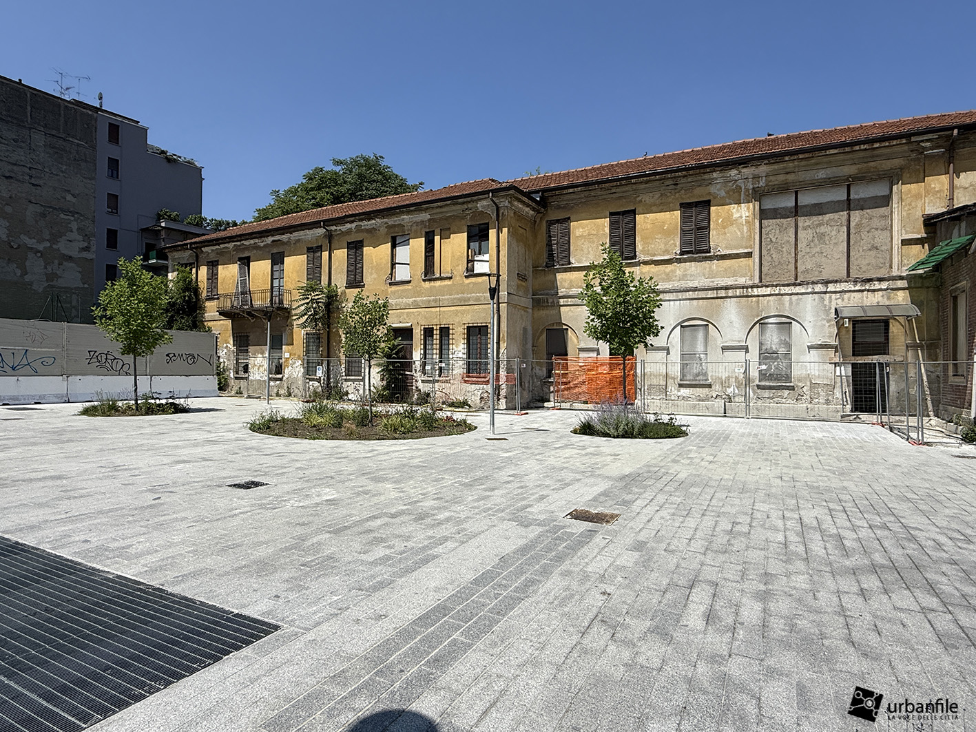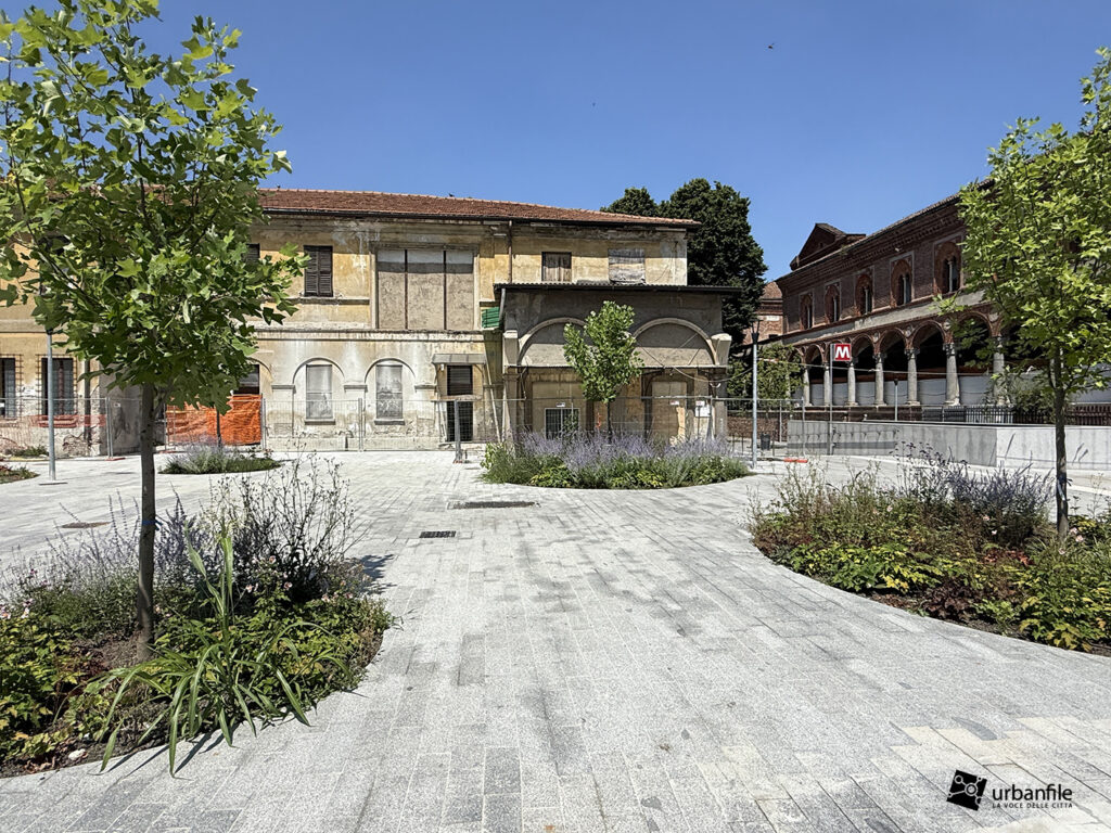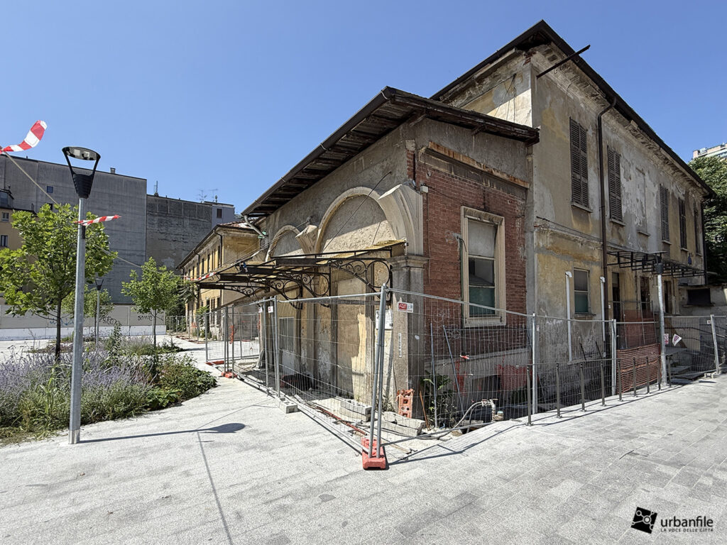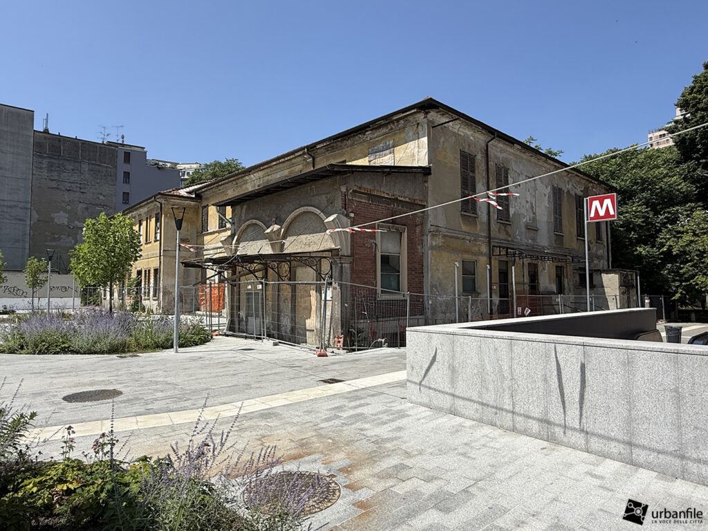 Giungiamo così nel piazzale dove si trovano le uscite della M4 Sforza Policlinico, dove vi mostriamo l’edificio prossimo ad un recupero e a una riqualificazione con l’intenzione di trasformarlo in parte del complesso universitario.