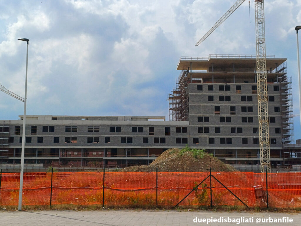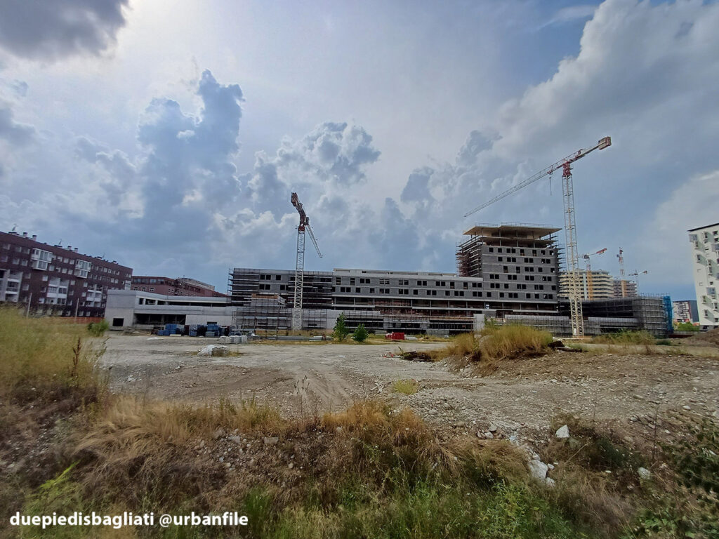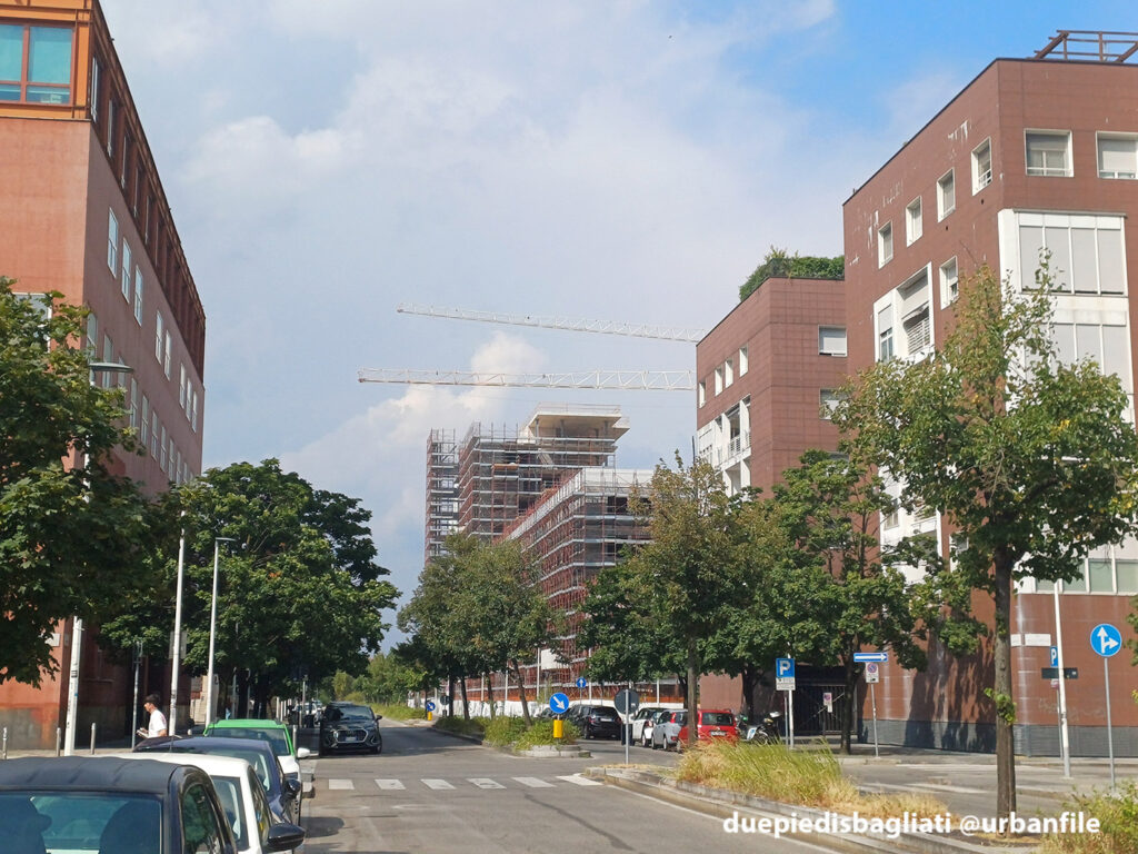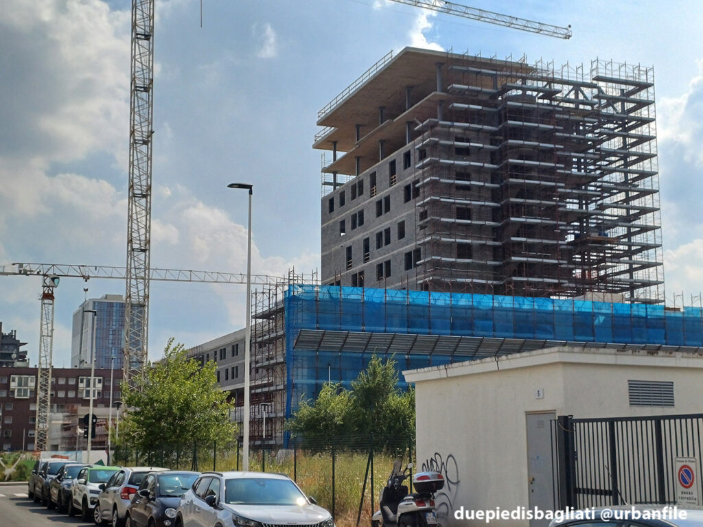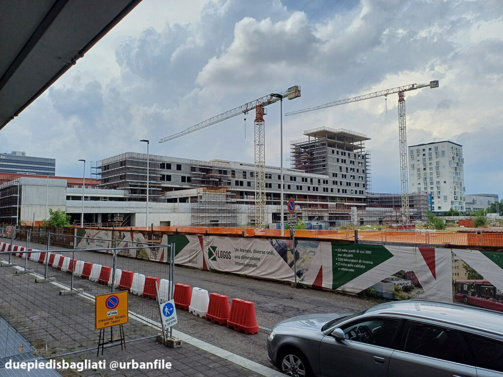 Si tratta del cantiere per l’Edificio U10 dell’Università degli Studi Milano Bicocca. Lo sviluppo edilizio per U10 prevede la realizzazione del nuovo palazzo che includerà una residenza universitaria con oltre 100 posti letto, spazi destinati all’insegnamento e alle attività di supporto del corpo docente e una dotazione complessiva di oltre 30 aule, laboratori informatici e aule studio a servizio di circa 4.500 studenti, oltre ad un’ampia area di verde attrezzato verso via Sesto San GIovanni e la ferrovia. Progetto del 2014 di Logos – Gregotti Associati.