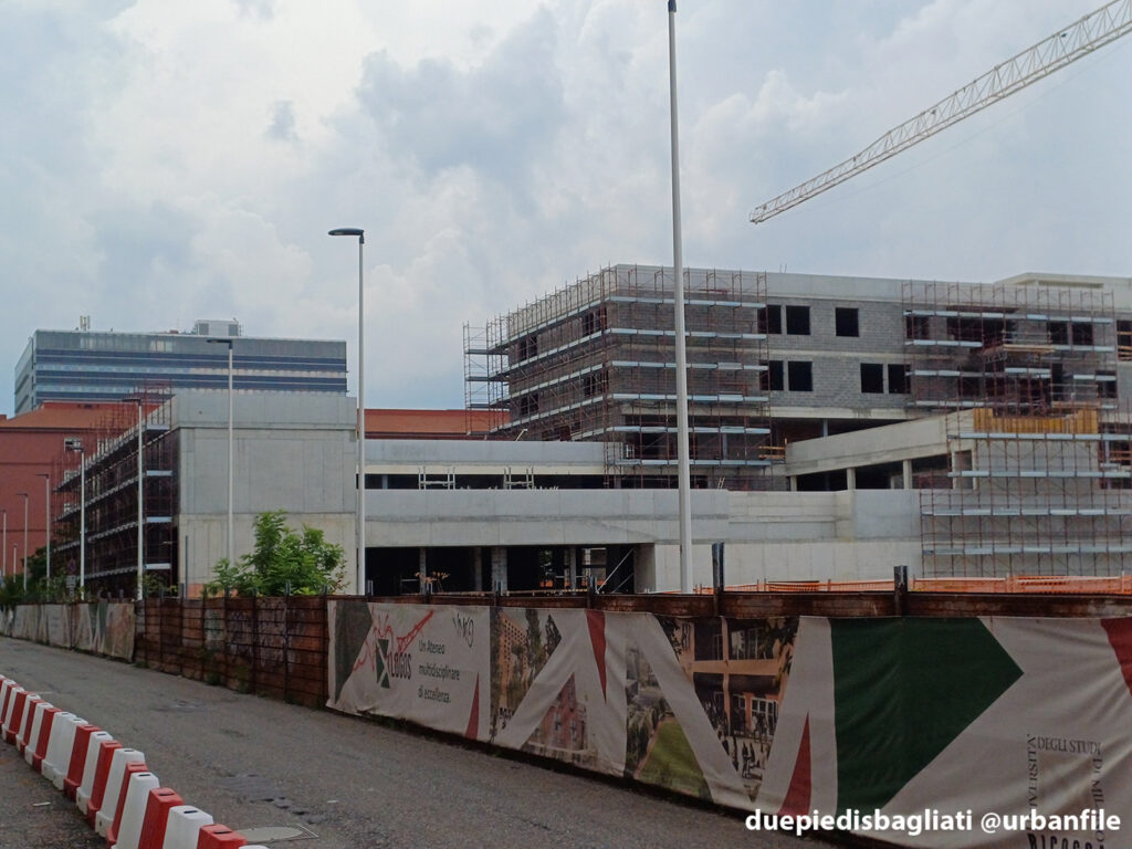Era da febbraio che non vi aggiornavamo con nuove foto dal cantiere per i nuovi edifici universitari di Viale dell’Innovazione, tra via Stella Bianca e via Mario Fubini alla Bicocca. Cantiere rimasto fermo per alcuni anni, tanto che lo davamo spacciato ormai, perché le attività si erano interrotte bruscamente nell’aprile 2022 (nel mese di settembre 2022 il nostro ultimo aggiornamento prima della ripresa), ora ripreso a gran ritmo dalla scorsa estate.