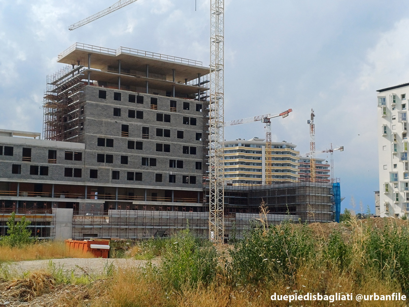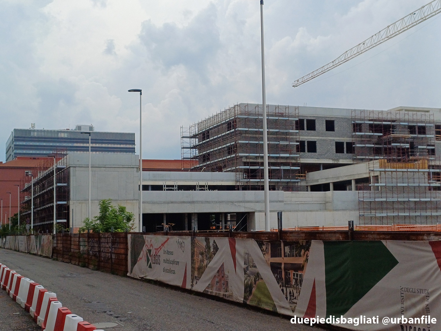 Si tratta del cantiere per l’Edificio U10 dell’Università degli Studi Milano Bicocca. Lo sviluppo edilizio per U10 prevede la realizzazione del nuovo palazzo che includerà una residenza universitaria con oltre 100 posti letto, spazi destinati all’insegnamento e alle attività di supporto del corpo docente e una dotazione complessiva di oltre 30 aule, laboratori informatici e aule studio a servizio di circa 4.500 studenti, oltre ad un’ampia area di verde attrezzato verso via Sesto San GIovanni e la ferrovia. Progetto del 2014 di Logos – Gregotti Associati.