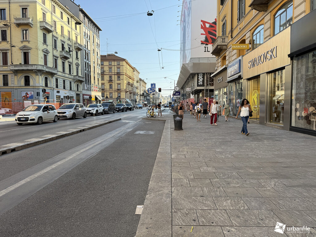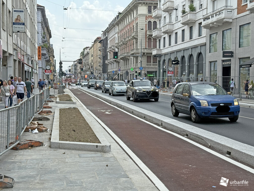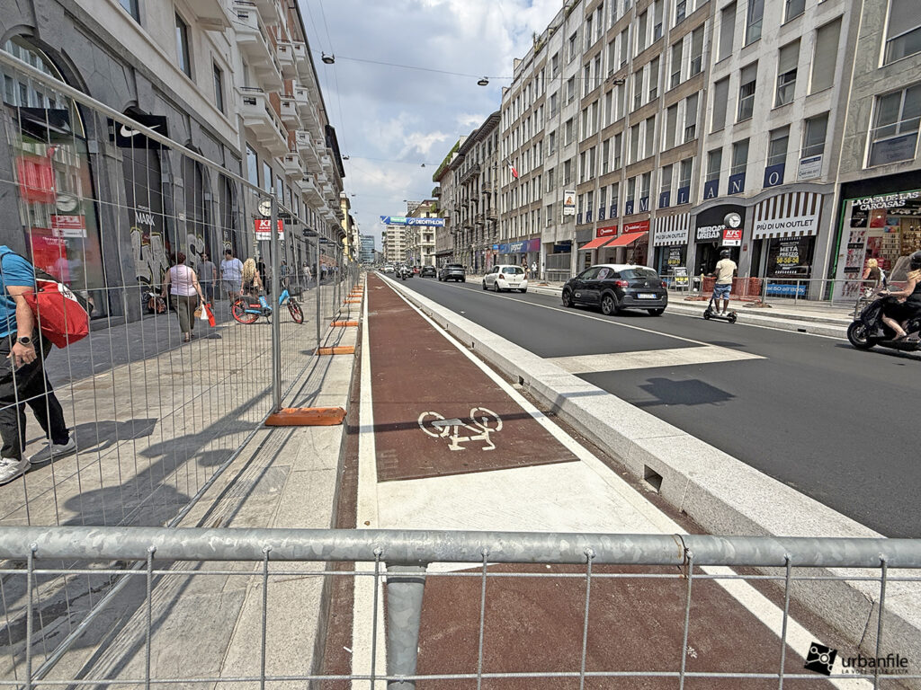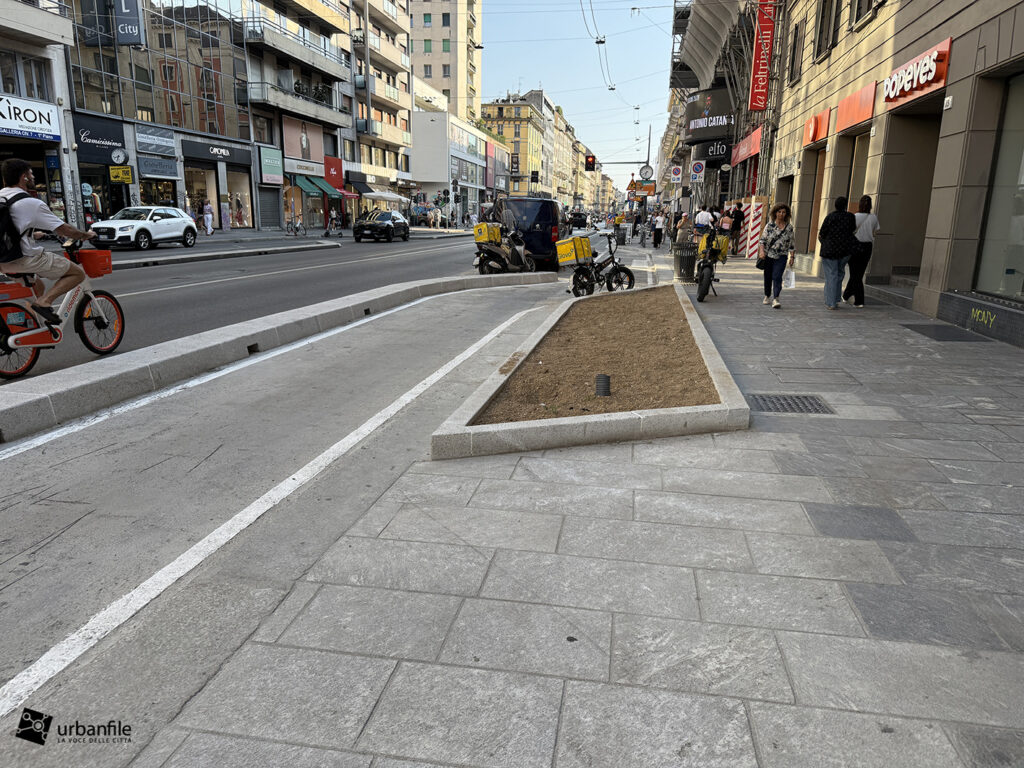 Proseguiamo verso il centro, dove da piazza Lima raggiungiamo via Francesco Redii e via Ruggero Boscovich. Il tratto di Corso Buenos Aires sul lato dispari è stato completato, sia marciapiede, sia ciclabile e aiuole. In questo tratto il lato pari del corso non è stato ancora toccato dal cantiere.
