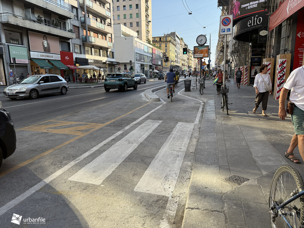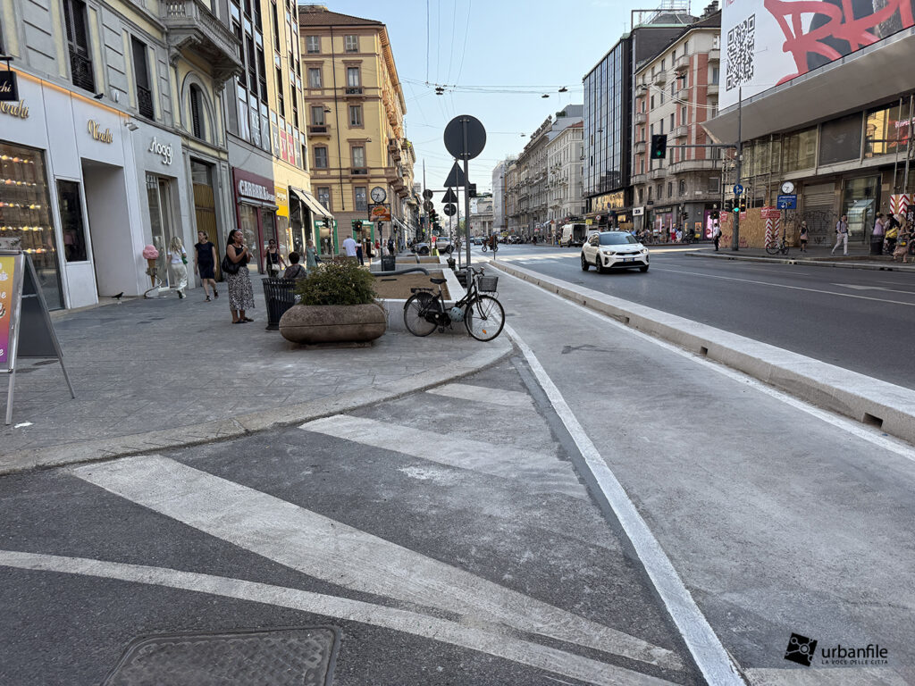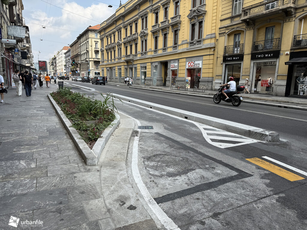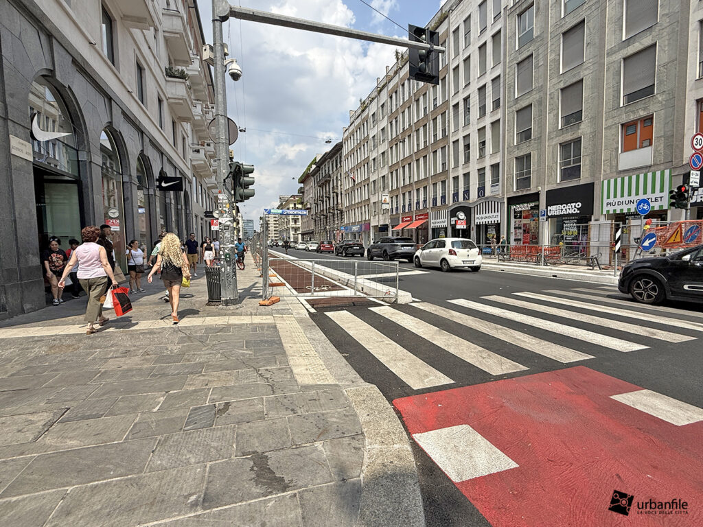Proseguiamo verso il centro, dove da piazza Lima raggiungiamo via Francesco Redii e via Ruggero Boscovich. Il tratto di Corso Buenos Aires sul lato dispari è stato completato, sia marciapiede, sia ciclabile e aiuole. In questo tratto il lato pari del corso non è stato ancora toccato dal cantiere.