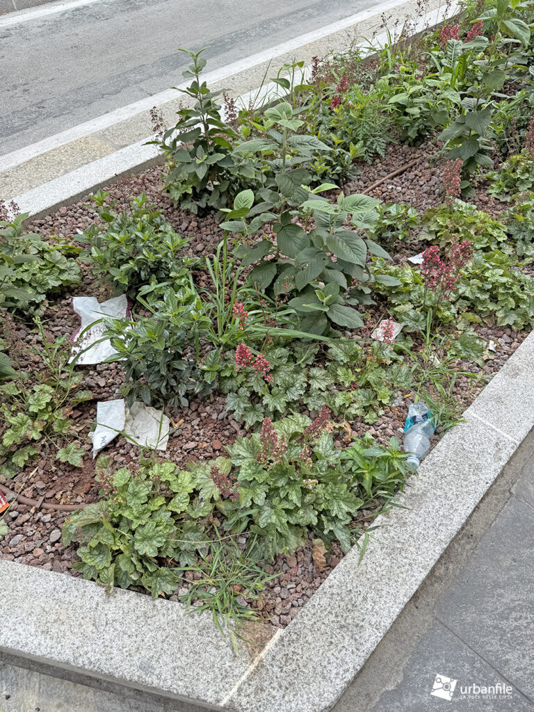 A parte il cattivo gusto nella scelta degli arbusti, come sempre la cattiva abitudine italiana di maltrattare gli spazi pubblici ha già dato il meglio con l’abbandono di cartacce e bottiglie.
