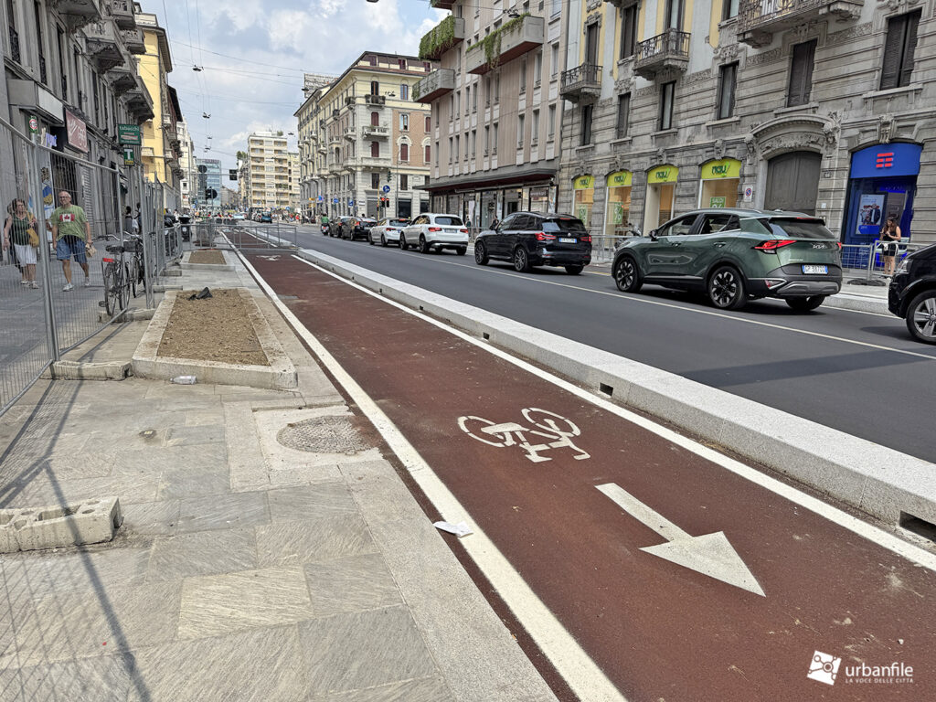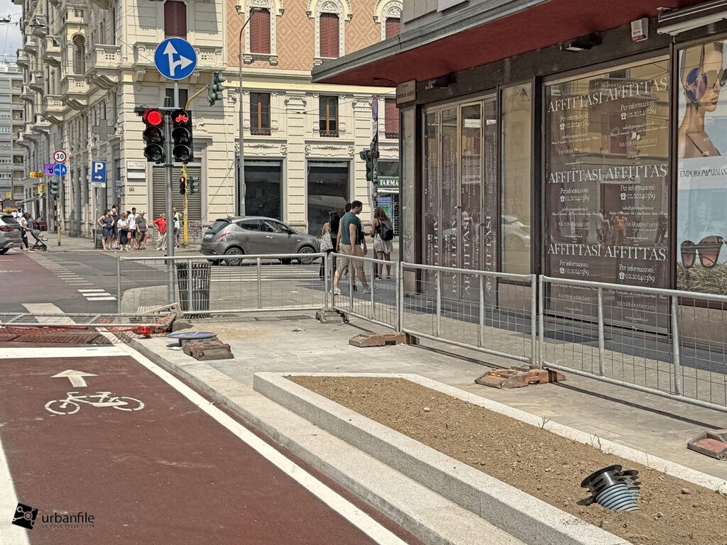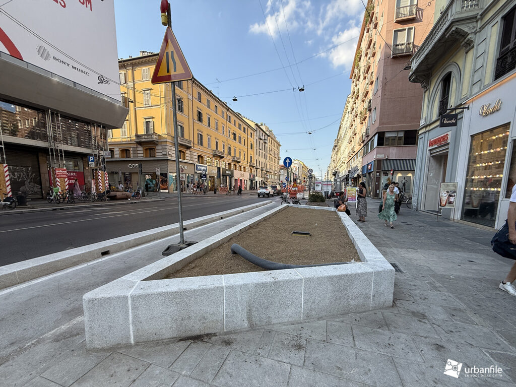 Il tratto del corso che va da via Redi e via Boscovich a viale Tunisia e viale Regina Giovanna è in cantiere su entrambi i lati. Nello specifico il lato dispari tra via Boscovich e via San Gregorio. Mentre sul lato pari il cantiere è in fase di realizzazione tra via Omboni e viale Regina Giovanna. All’altezza di via Angelo Secchi, è già stata realizzata una delle vasche-aiuola. Il resto è ancora un cantiere.