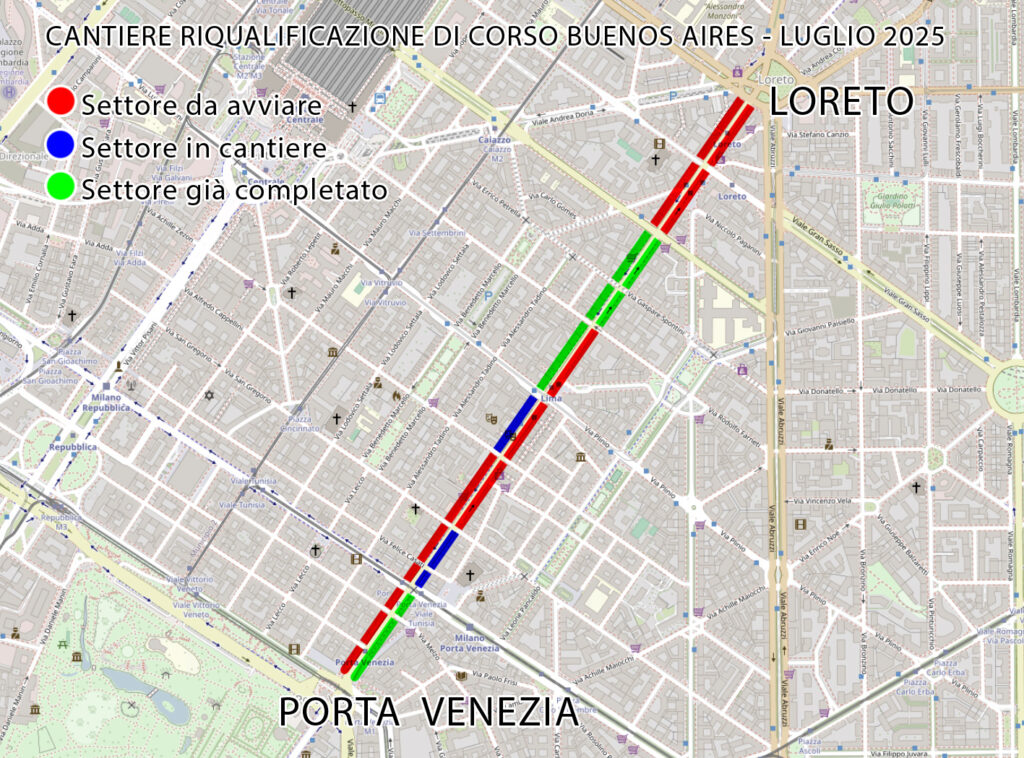 Nuovo aggiornamento, di luglio dal cantiere per la riqualificazione di Corso Buenos Aires, la grande arteria commerciale lunga un chilometro e mezzo sita tra Porta Venezia e Loreto.