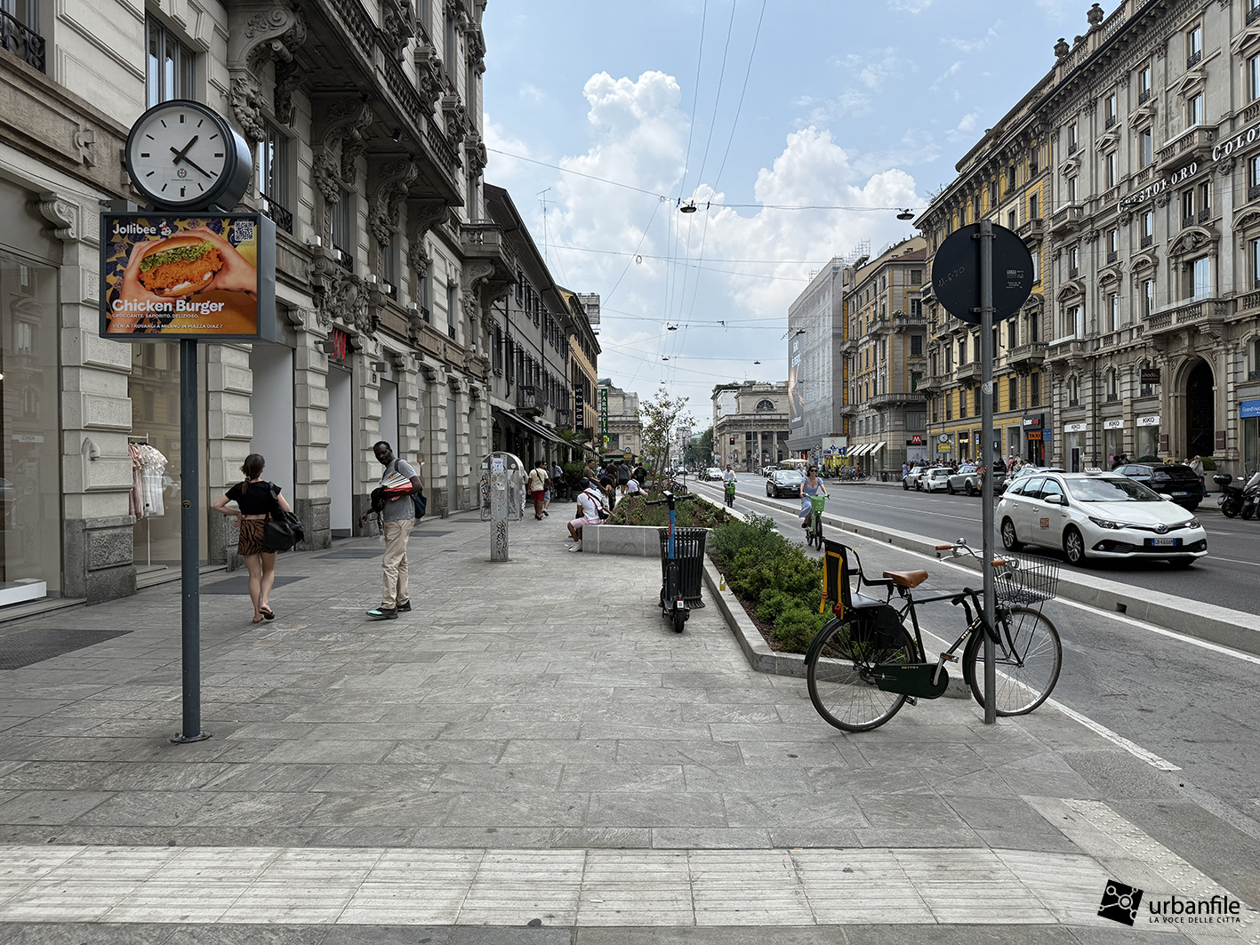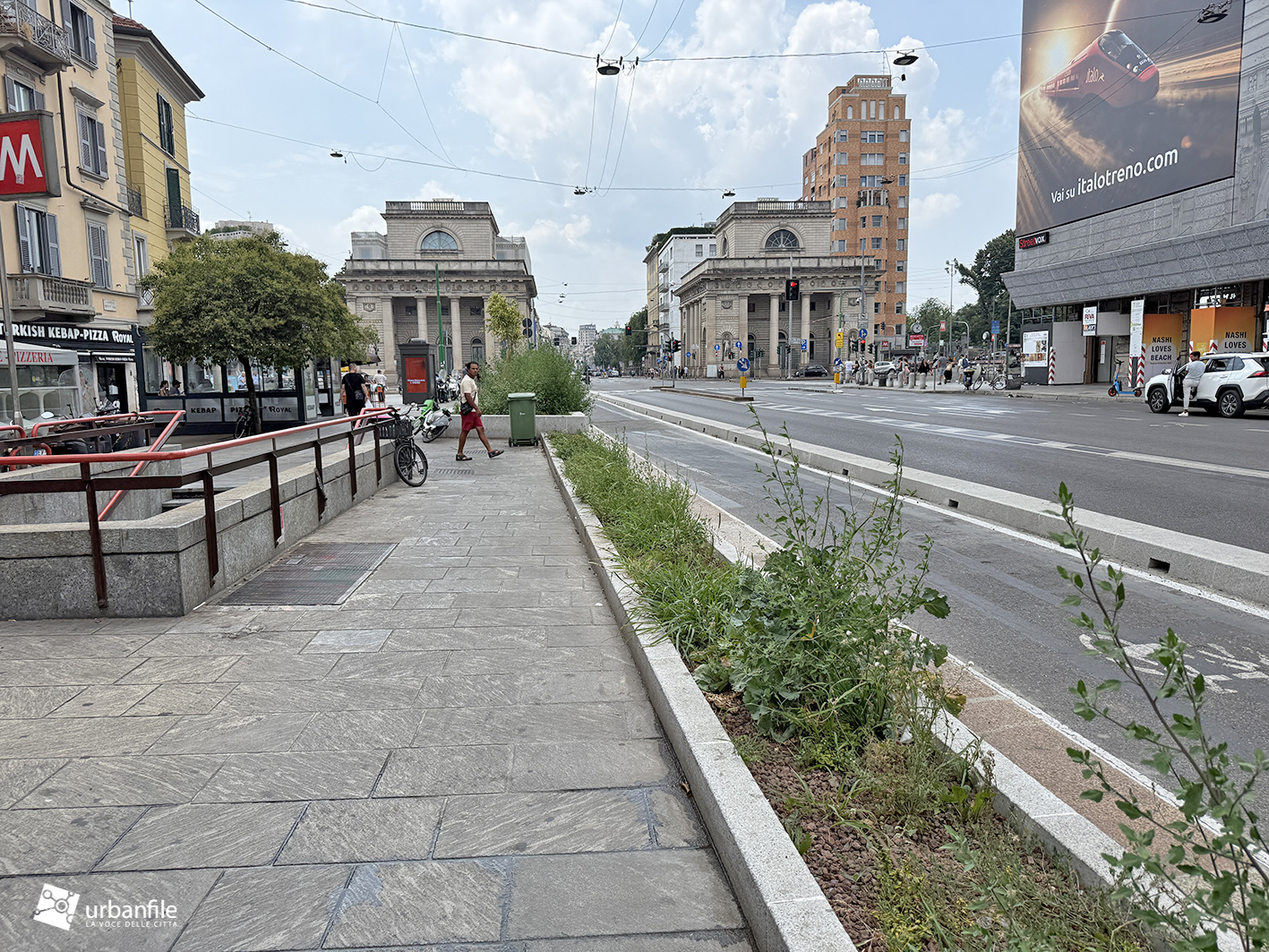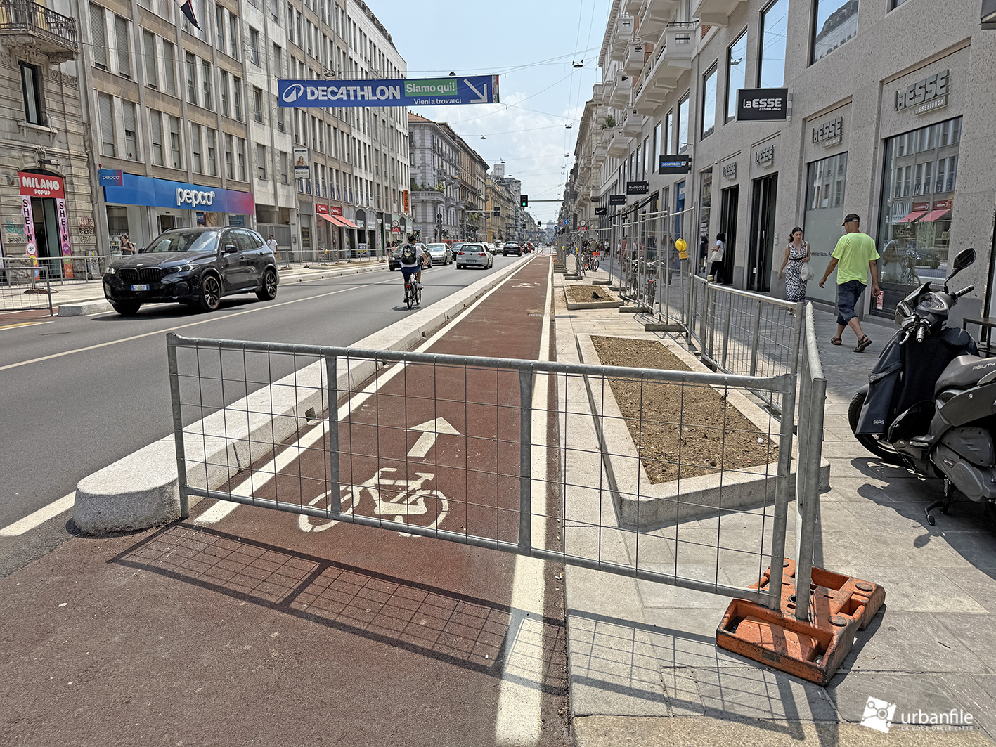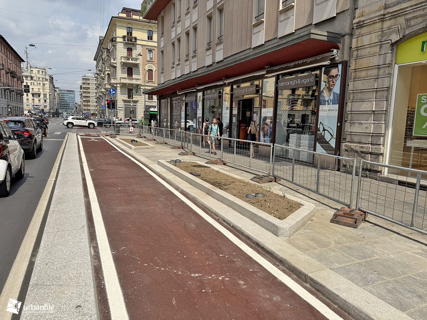 Proseguiamo verso il centro, dove da piazza Lima raggiungiamo via Francesco Redii e via Ruggero Boscovich. Il tratto di Corso Buenos Aires sul lato dispari è stato completato, sia marciapiede, sia ciclabile e aiuole. In questo tratto il lato pari del corso non è stato ancora toccato dal cantiere.