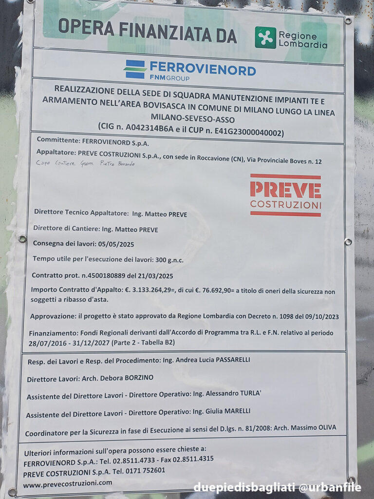 Concludiamo col cantiere avviato tra via Carlo Reale e via Bovisasca, a lato della Livellara e del complesso che ospita Spirit de Milan. Qui dovrebbe venire realizzata una sede per la scquadra di manutenzione impianti TE e armamento nell’area Bovisasca lungo la linea Milano, Seveso Asso.