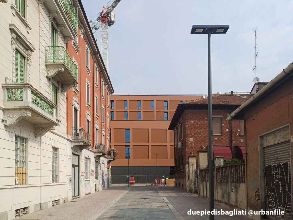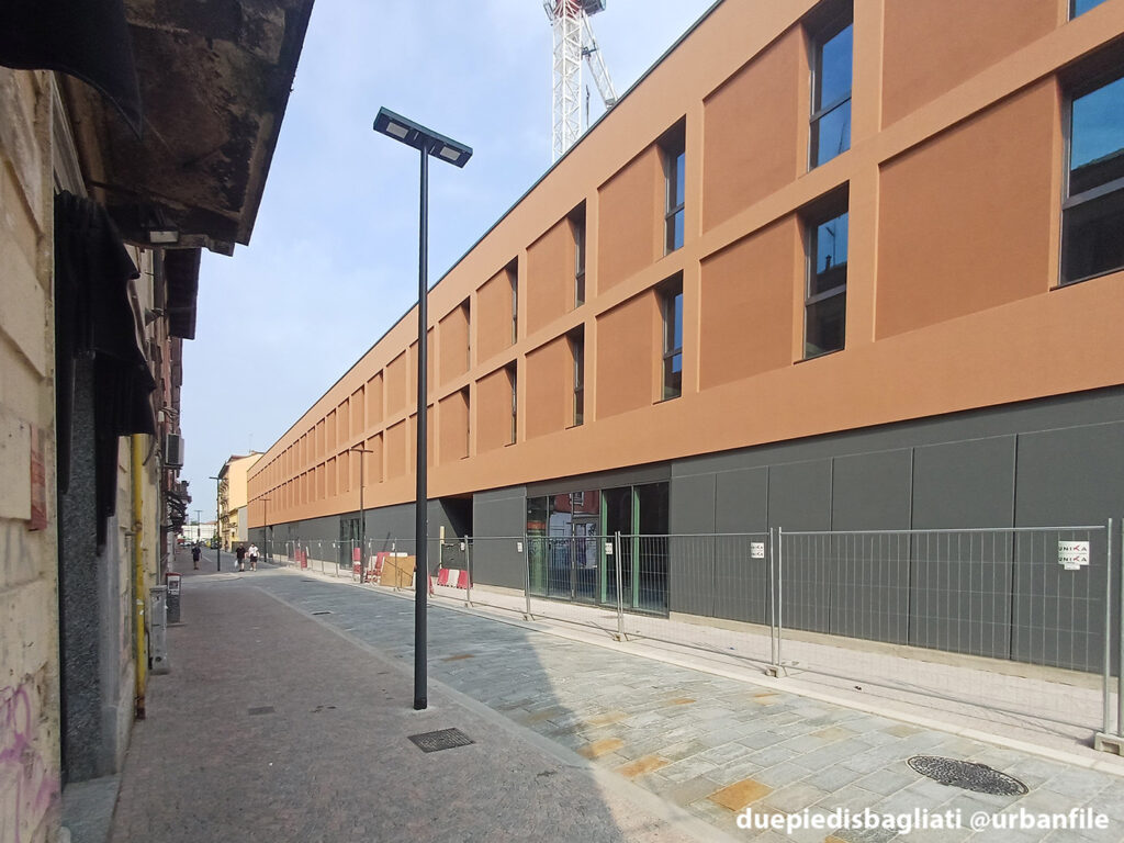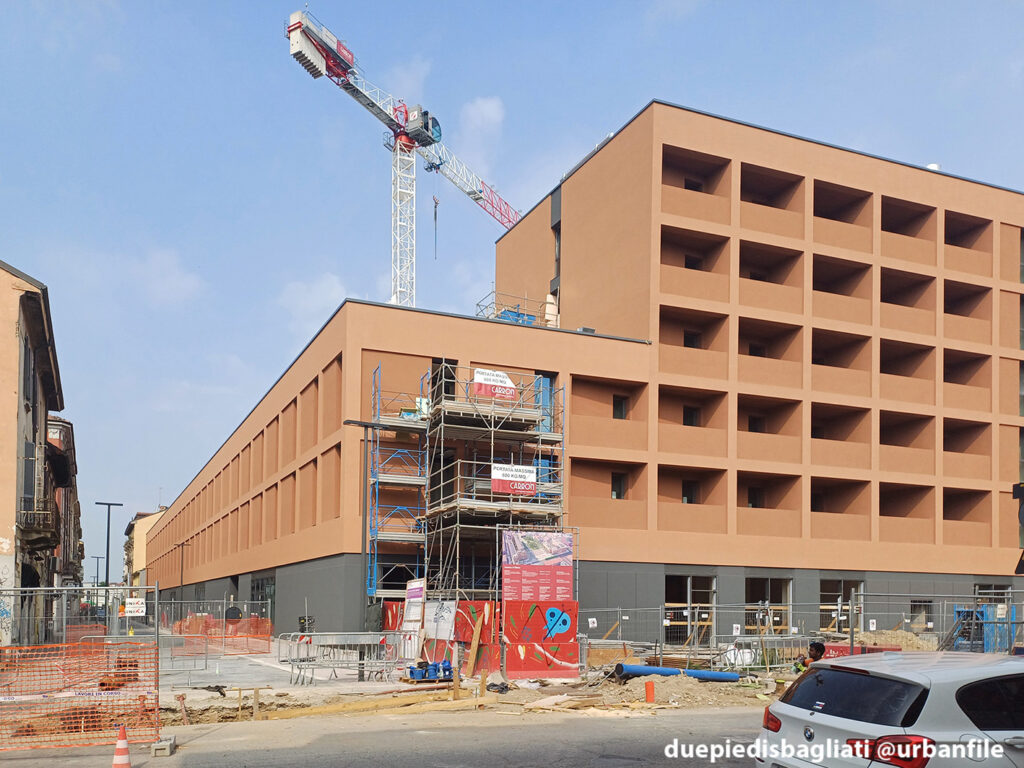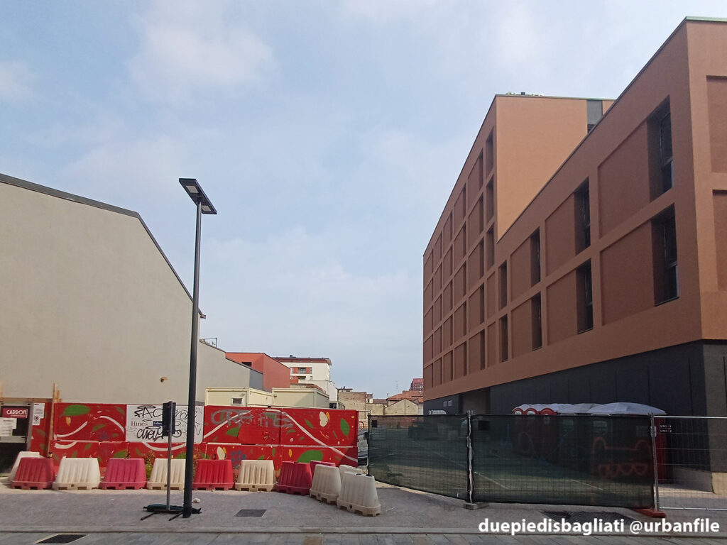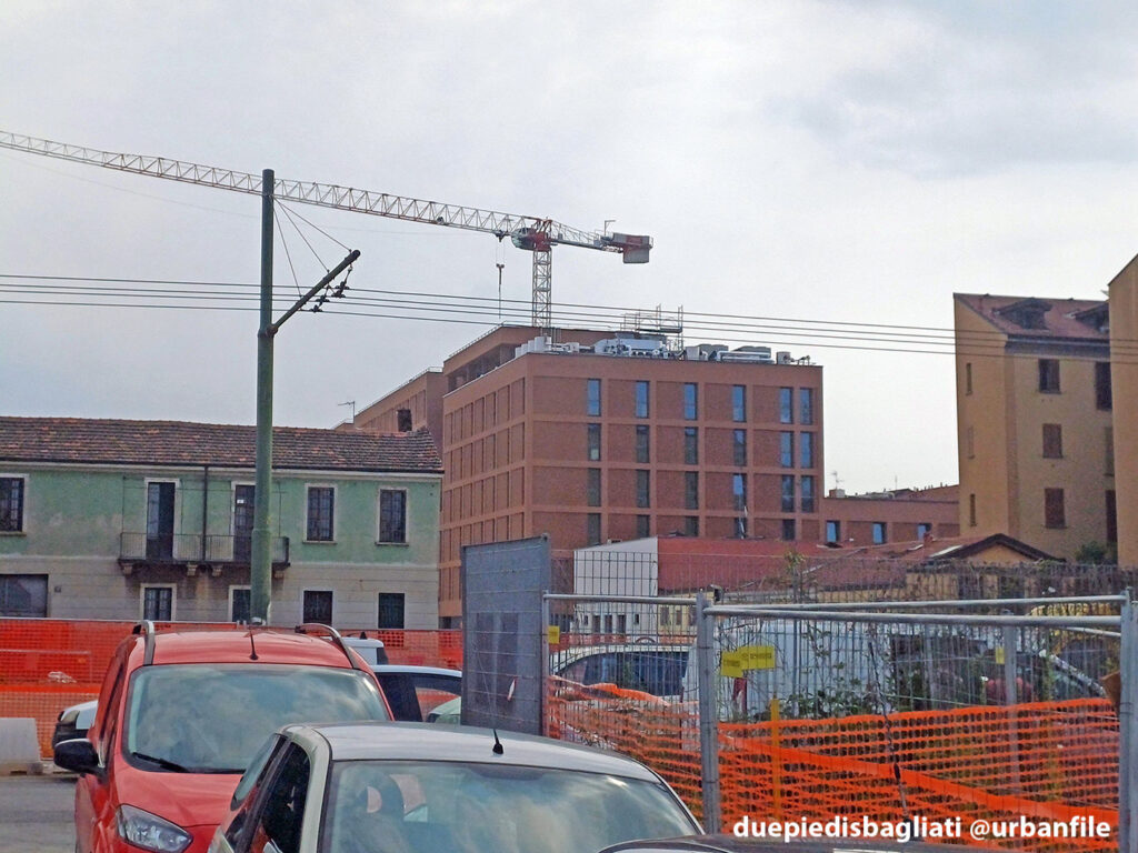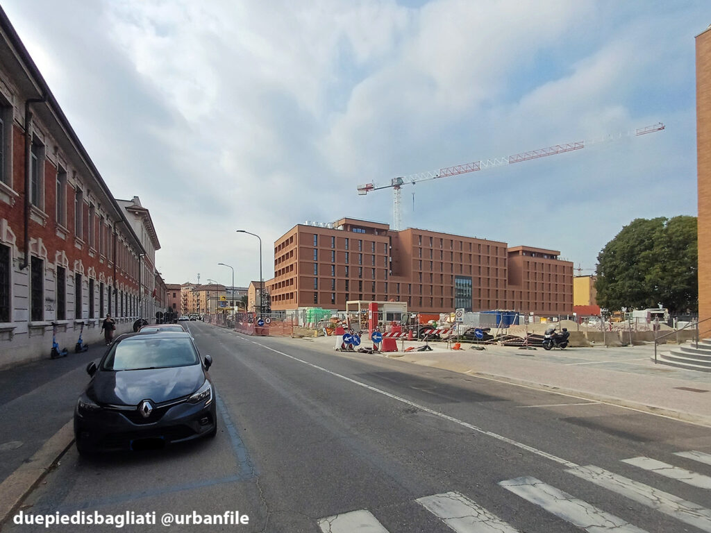 In via Durando sul lato dispari si trovano due grandi cantiere nell’area che diventerà una nuova e ampia piazza pubblica. Entrambi i progetti riguardano due studentati, quello che si trova sulla destra è stato già completato ed è già operativo come abbiamo visto nel mese di aprile: aparto Milan Durando.