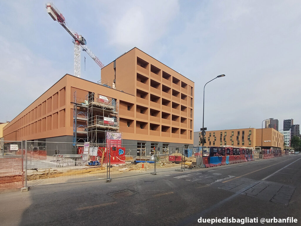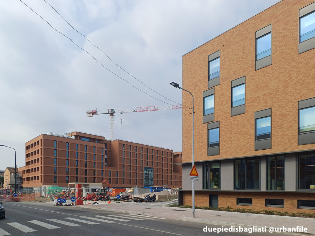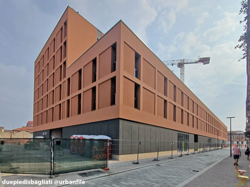 io mi chiedo, perché lo studentato è completamente diverso dal progetto presentato? colore diverso, volumetria diversa, mancanza di logge ridotte alla metà sull’altro lato, niente terrazzo al piano terzo che corre tutto intorno all’edificio e altro ancora. che fastidio che, da un design bello e interessante, si sia dovuti andare a semplificare e a ridurre fino all’osso, rendendolo un blocco arancione con zero interesse architettonico, e proprio davanti alla sede di design del politecnico, rido per non piangere.