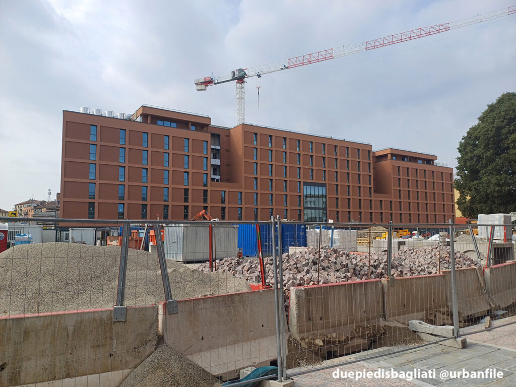 Questi è vero. Ci sono addirittura le foto dei render sulle staccionate intorno al cantiere e si nota come il secondo studentato .dovesse avere le loggette con ringhiere aperte, invece ora sono in mattonate che appesantiscono decisamente il palazzo.
