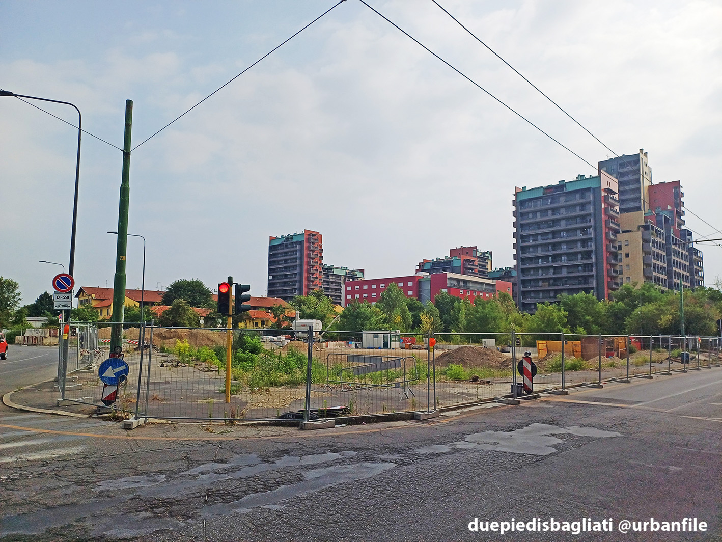 Concludiamo col cantiere avviato tra via Carlo Reale e via Bovisasca, a lato della Livellara e del complesso che ospita Spirit de Milan. Qui dovrebbe venire realizzata una sede per la scquadra di manutenzione impianti TE e armamento nell’area Bovisasca lungo la linea Milano, Seveso Asso.
