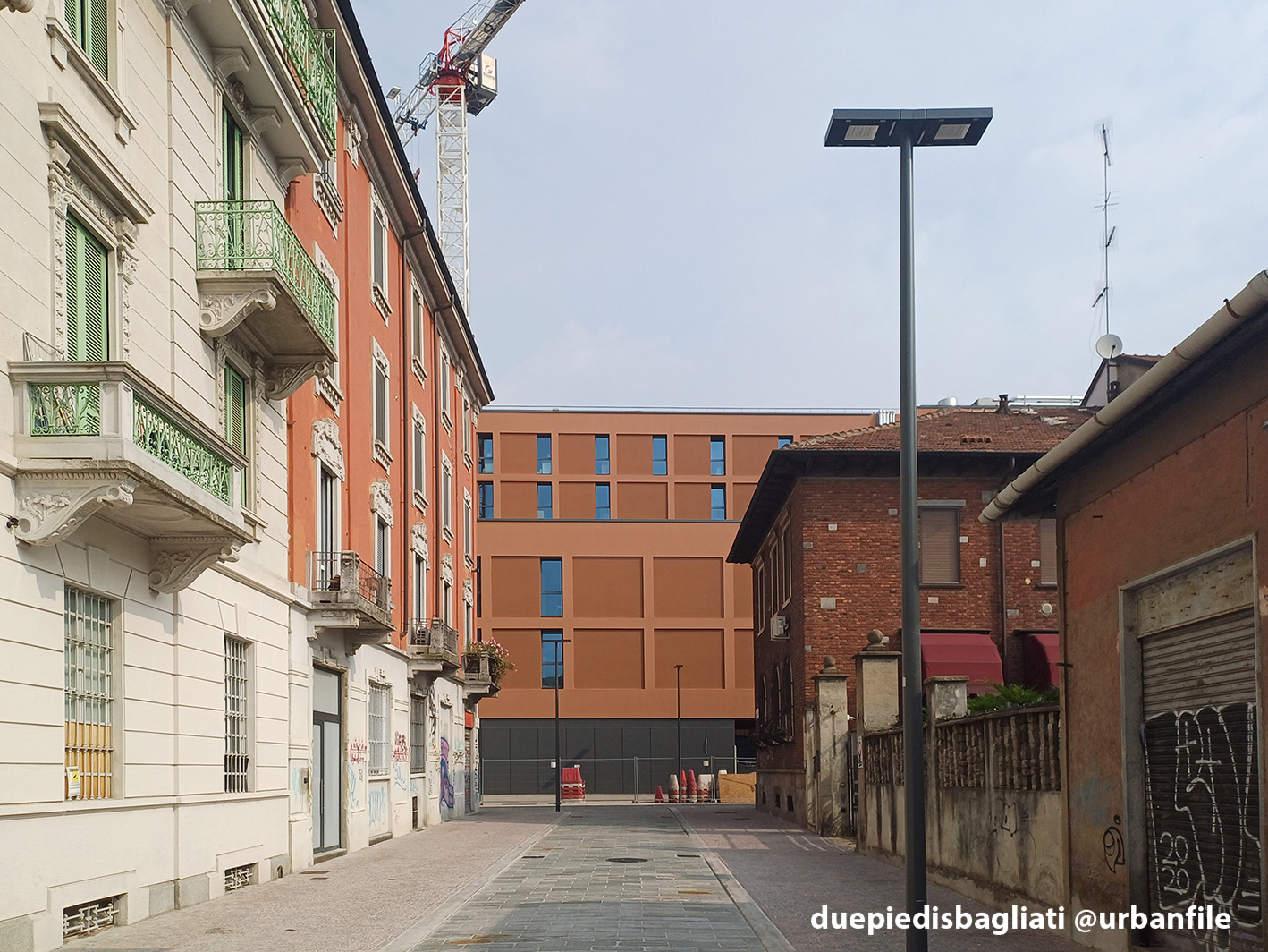 io mi chiedo, perché lo studentato è completamente diverso dal progetto presentato? colore diverso, volumetria diversa, mancanza di logge ridotte alla metà sull’altro lato, niente terrazzo al piano terzo che corre tutto intorno all’edificio e altro ancora. che fastidio che, da un design bello e interessante, si sia dovuti andare a semplificare e a ridurre fino all’osso, rendendolo un blocco arancione con zero interesse architettonico, e proprio davanti alla sede di design del politecnico, rido per non piangere.