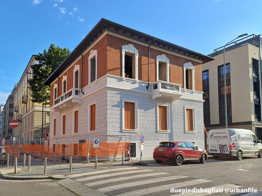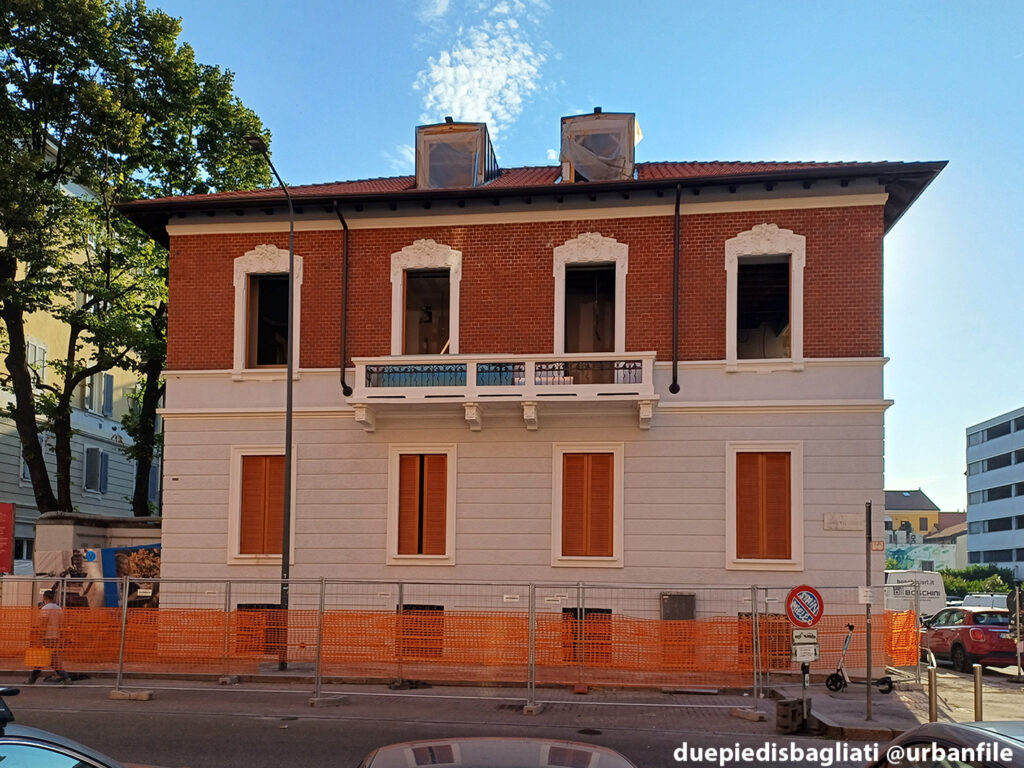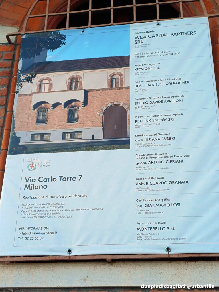 In Via Carlo Torre 7 e di fronte al Parco Baden-Powell, si trova una coppia di villette affiancate del primo Novecento realizzate in un grazioso stile neo-medievale. Due palazzine di un piano riprodotte specularmente (i civici sono il 7 e il 9). Da qualche mese sono in corso i lavori di riqualificazione e ammodernamento della palazzina al civico 7 secondo un progetto di DFA – Daniele Fiori Partners (che riteniamo una garanzia per gli amanti delle architetture che strizzano l’occhio all’architettura storica).