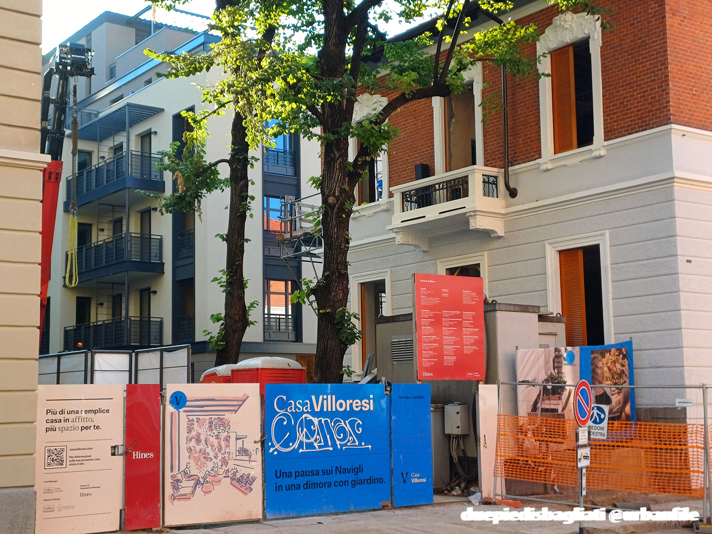 In Via Eugenio Villoresi, 13-15 (angolo Via Giovanni Pastorelli), a due passi dal Naviglio Grande, si trova il cantiere confinante, dove si trovava un edificio per uffici, costruito approssimativamente negli anni Ottanta e sorto dove si trovava lo stabilimento Isolabella, demolito completamente nell’aprile 2022. La proprietà (Hines – fondo: HEVF 2 – Hines European Value Fund 2), ha provveduto a riqualificare e trasformare il complesso realizzando un edificio residenziale con un bel progetto di DFA Partners che ha preservato e riqualificato la graziosa villa d’angolo dal gusto eclettico-liberty.