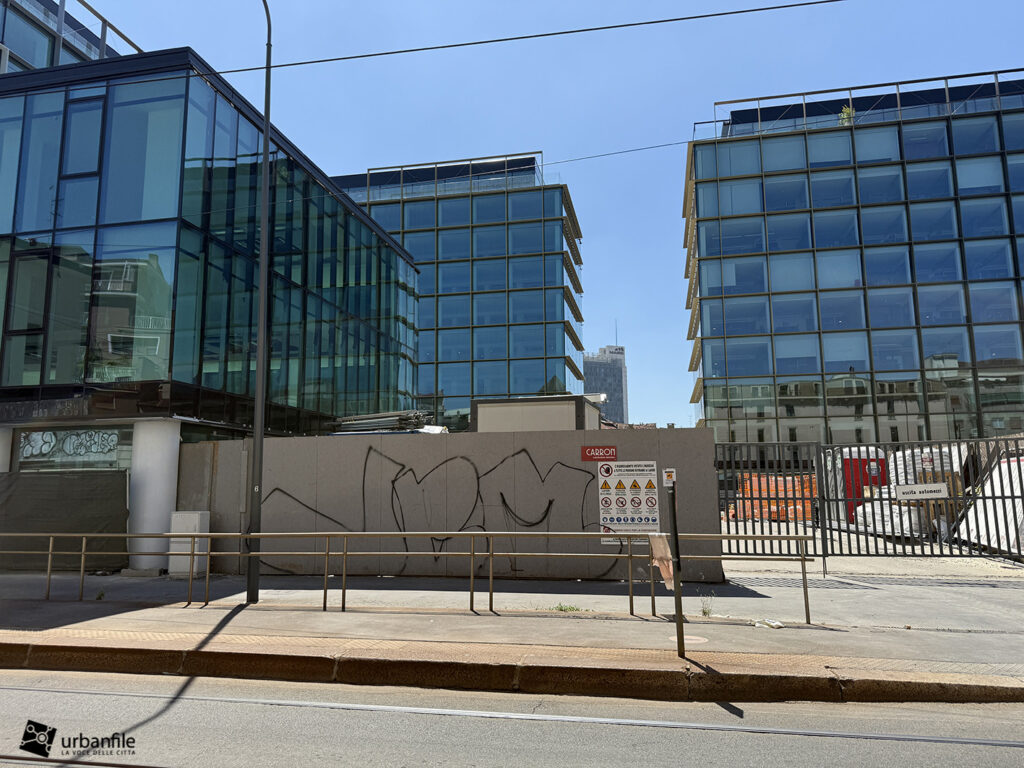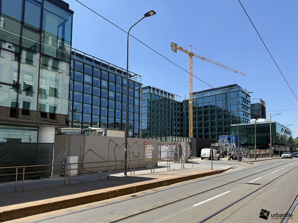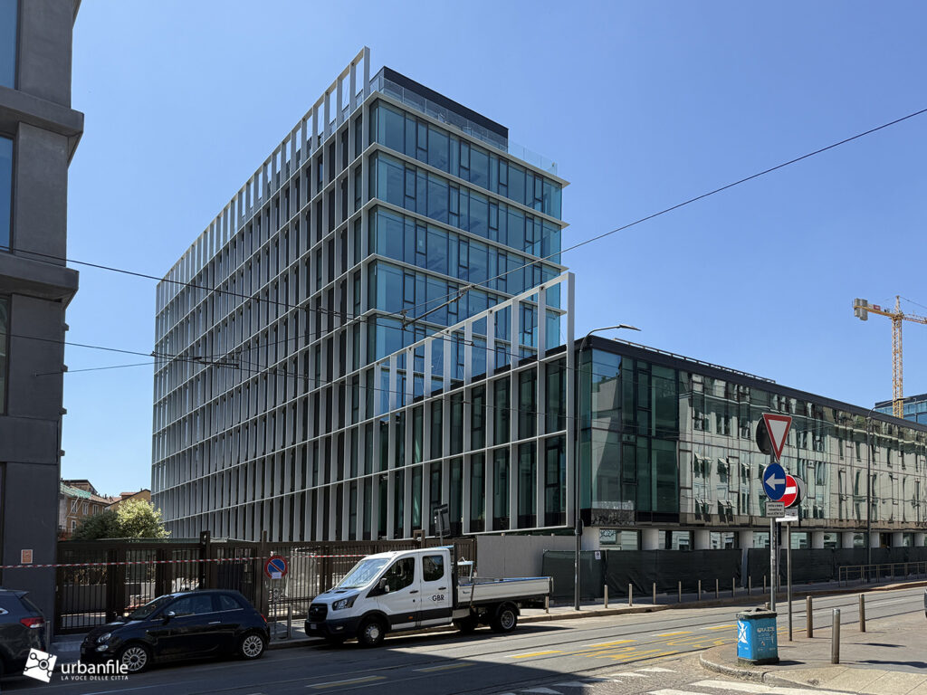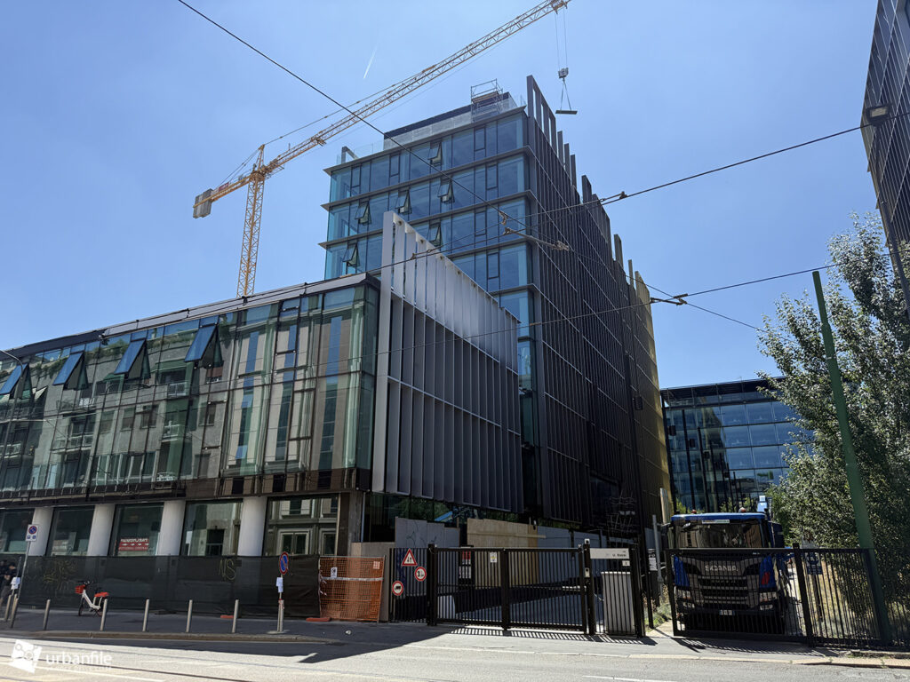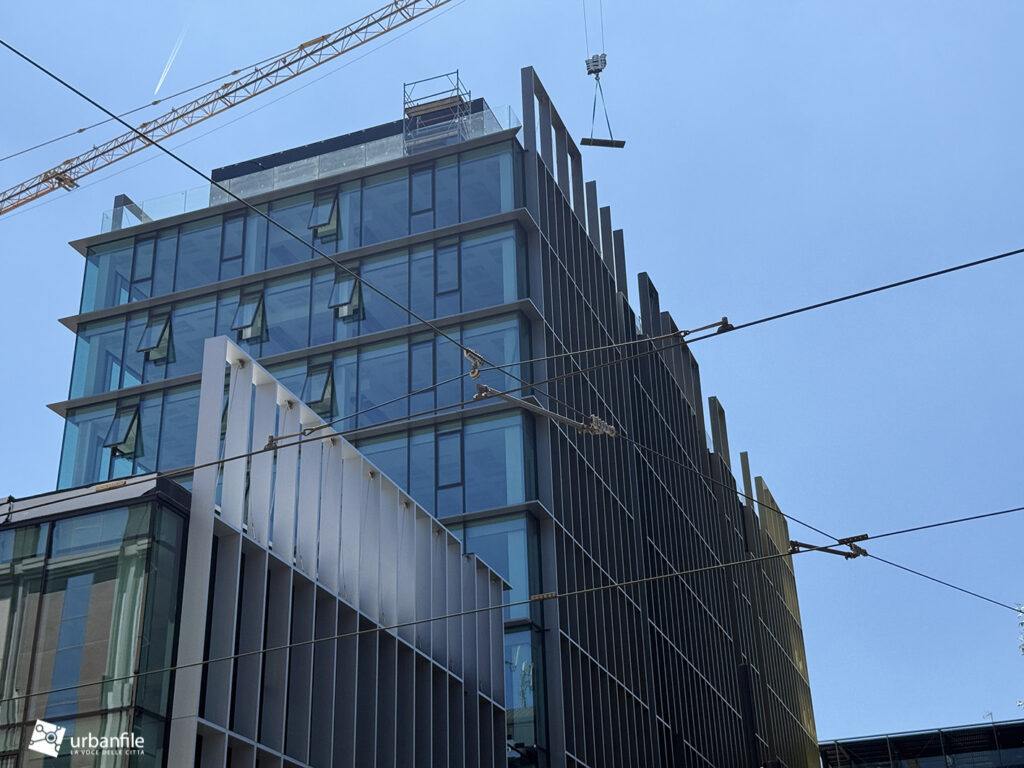 Cominciamo col cantiere che vede coinvolto nuovamente l’edificio di piazza Fidia 1, Primo, completato già nel 2024 ma che a causa di problemi tecnici, pare sia stato sottoposto ad un “ritocco” forzato. L’edificio è sede di Satispay, la società specializzata nei pagamenti digitali.
