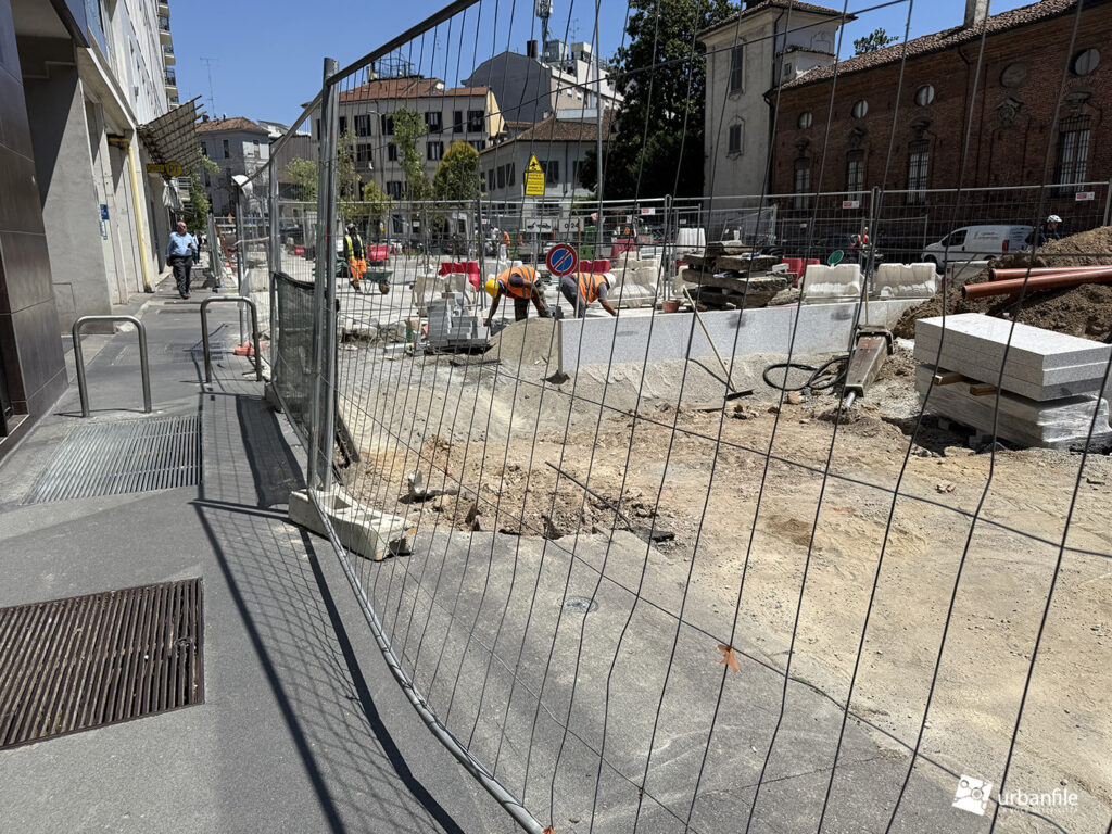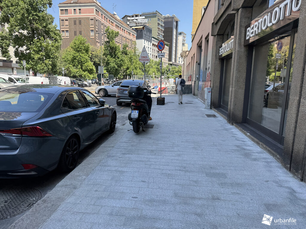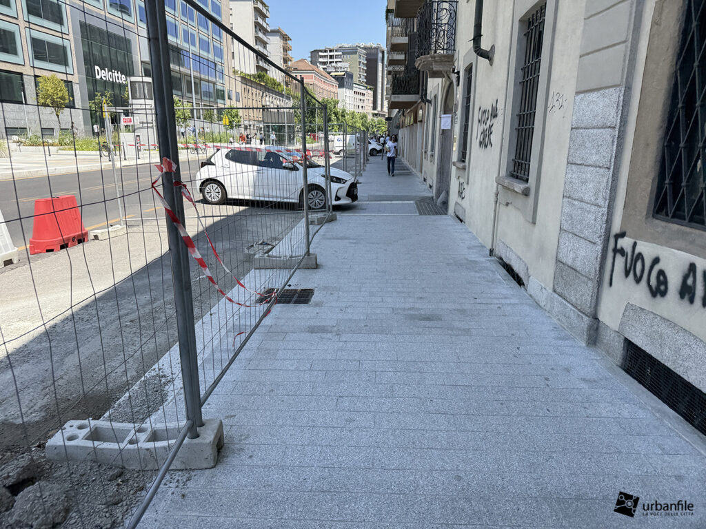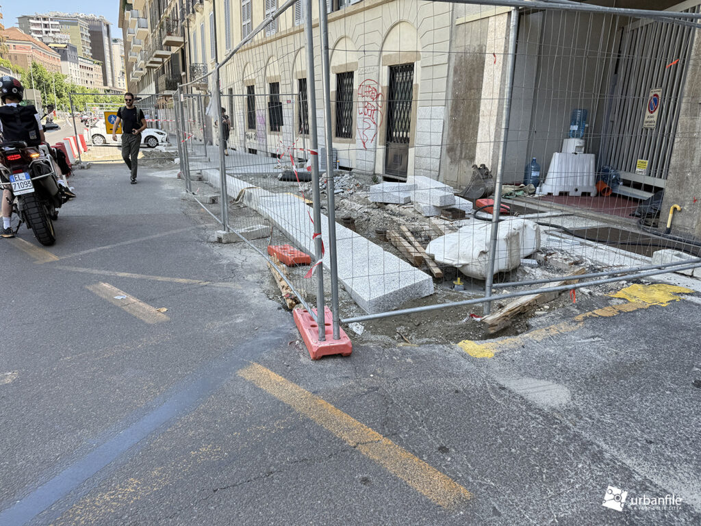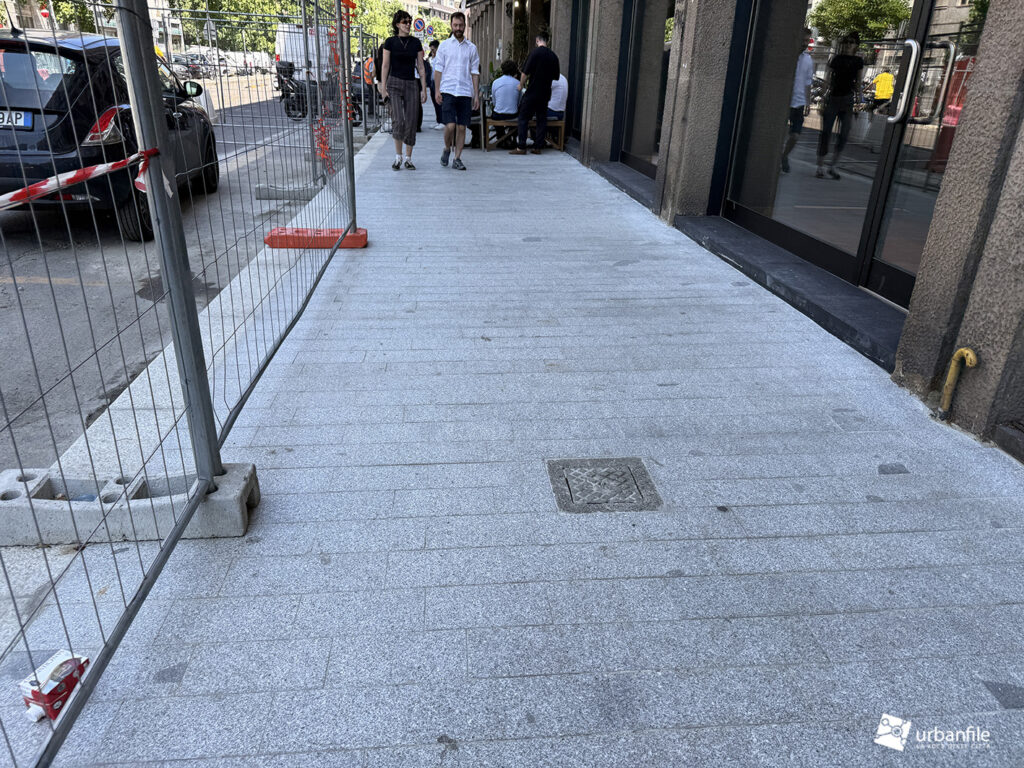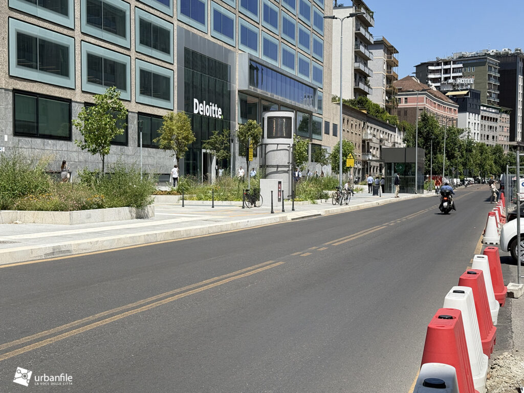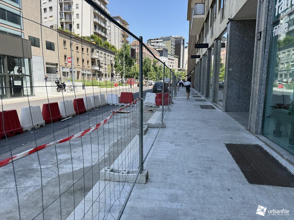 Veniamo ai lavori di riqualificazione di via Santa Sofia. La parte finale della via, verso Corso Italia, è stata completata con l’inaugurazione di Largo Piero Sacerdoti e dove si trova l’uscita della stazione M4.