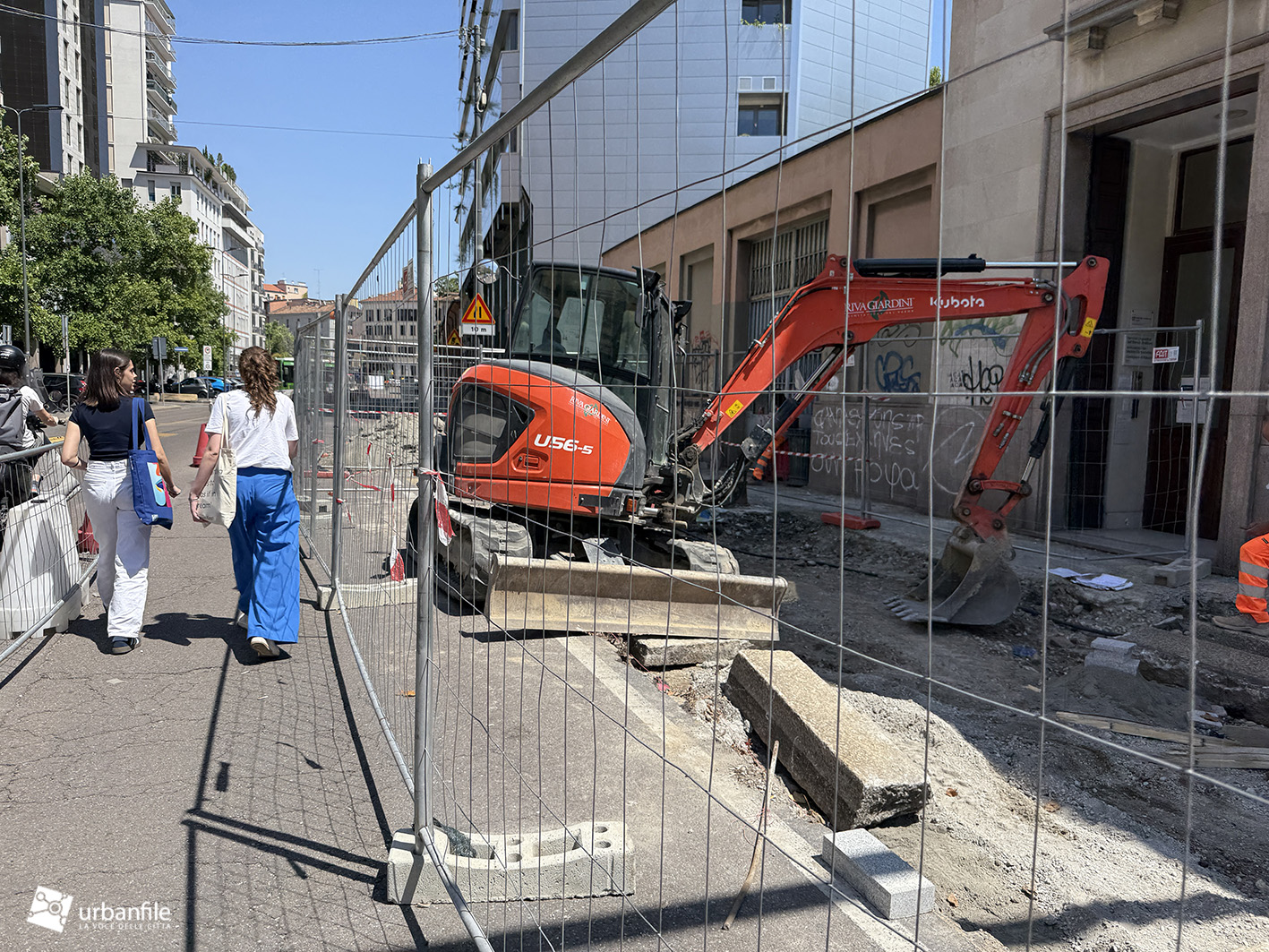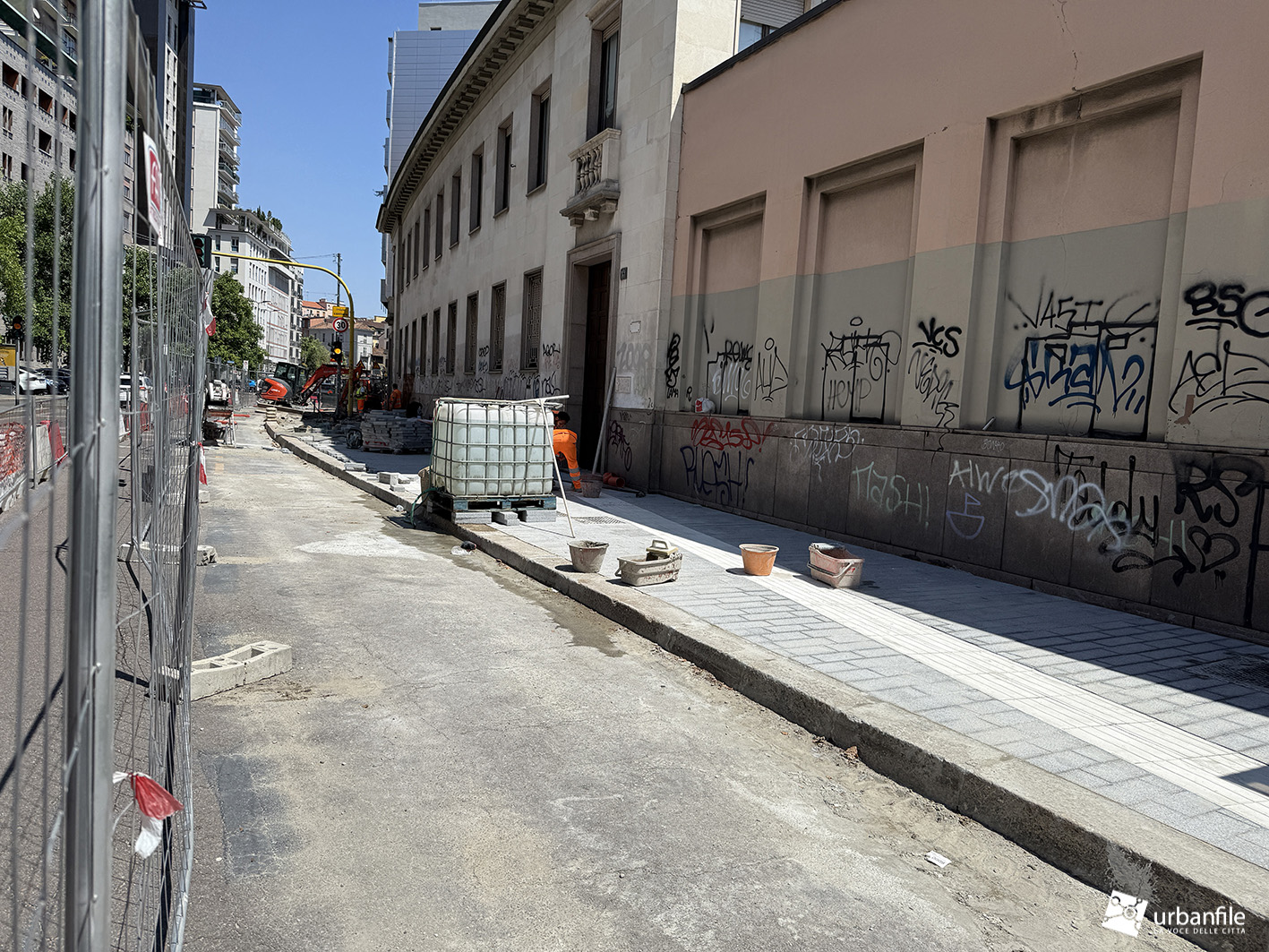 Veniamo ai lavori di riqualificazione di via Santa Sofia. La parte finale della via, verso Corso Italia, è stata completata con l’inaugurazione di Largo Piero Sacerdoti e dove si trova l’uscita della stazione M4.
