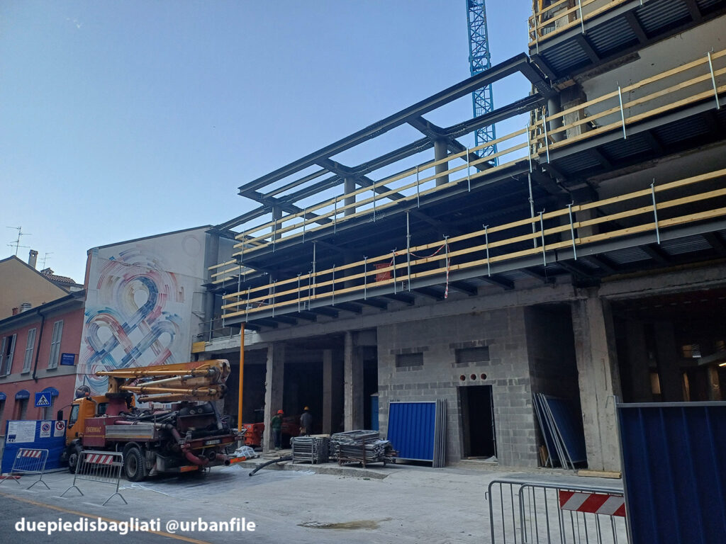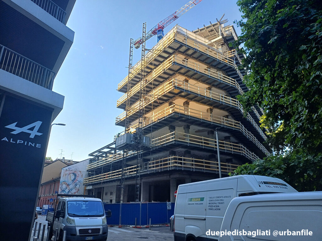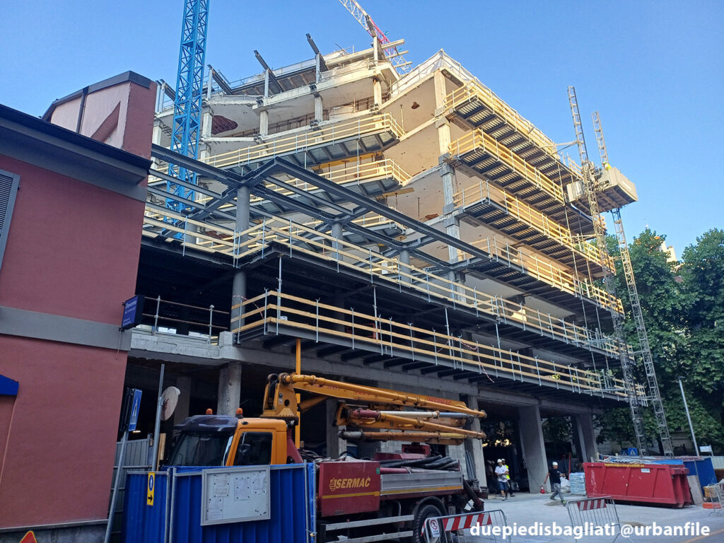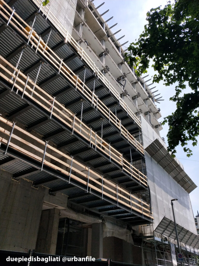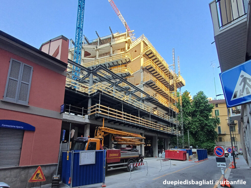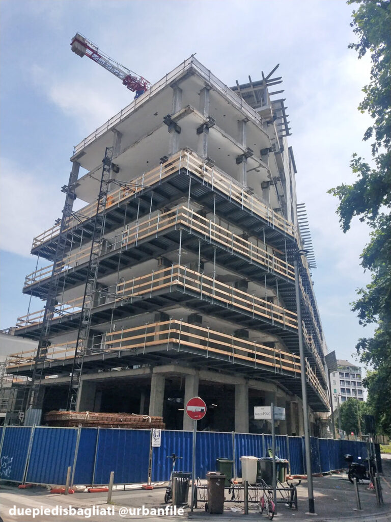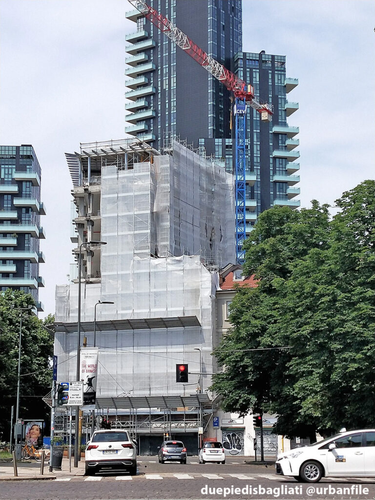 Presto saranno montate le nuove facciate (agganciate) al palazzo in riqualificazione di via Vespucci 2, Piazza Principessa Clotilde e via Marco Polo a Porta Nuova. Su via Marco Polo è stato aggiunto un piano, come si vede dalle foto a seguire.