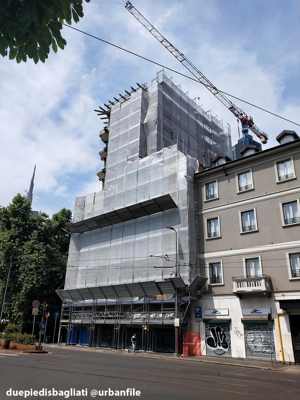 Presto saranno montate le nuove facciate (agganciate) al palazzo in riqualificazione di via Vespucci 2, Piazza Principessa Clotilde e via Marco Polo a Porta Nuova. Su via Marco Polo è stato aggiunto un piano, come si vede dalle foto a seguire.