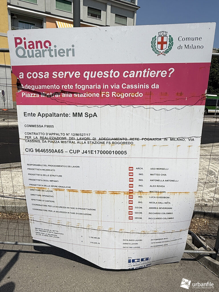 In questa zona, per diversi anni, è stato presente un cantiere per l’adeguamento della rete fognaria, da piazza Mistral alla stazione FS Rogoredo. L’intervento, iniziato nel 2007, si è concluso solo pochi giorni fa, dopo diverse fasi. Tra la fine del 2015 e il 2019, il cantiere era stato confinato solo sul lato sud della via, mentre la parte centrale era stata riaperta a partire dal 2019.