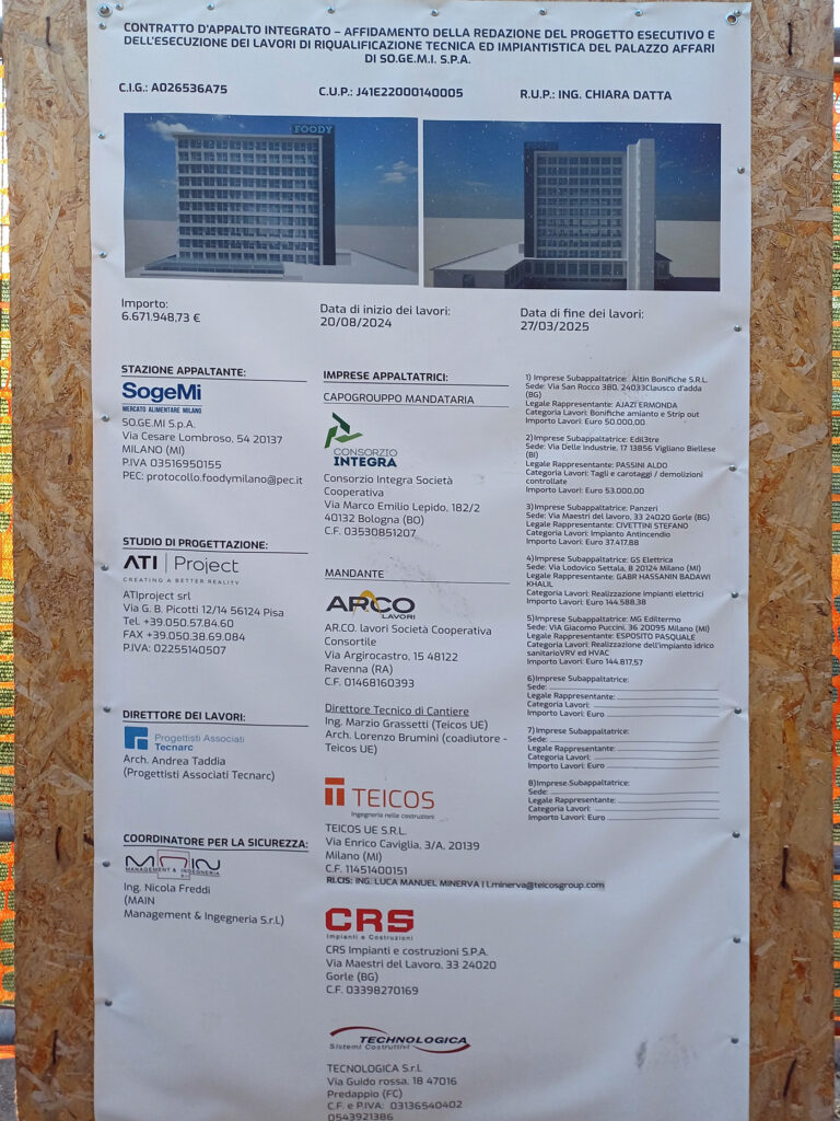 Avviati i lavori di riqualificazione tecnica ed impiantistica del Palazzo Affari di SogeMi – Foody in cui Technologica realizzerà una parte significativa dell’appalto totale.