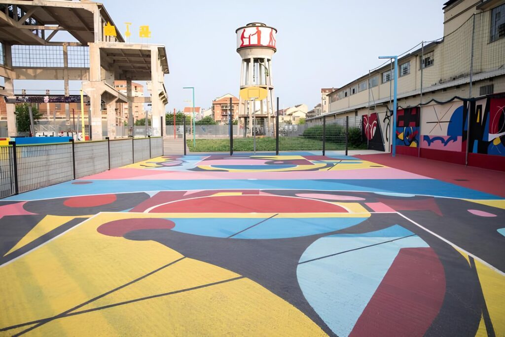 Il progetto di riqualificazione è stato curato da 20 studenti dello IAAD di Torino, guidati dalla Prof. Nardi, insieme a BDD e Velvet Studio, ed ha restituito alla città un centro di aggregazione urbana, riqualificato, con un nuovo campo da Basket “artistico”, curato dagli artisti Riccardo Lanfranco Corn79 ed Edoardo Bansone e un social table Laicos progettato dagli studenti dello IAAD – con l’obiettivo di stimolare la socializzazione e le relazioni tramite giochi di società. Inoltre, è stata anche inserita l’opera d’arte Machia dell’artista piemontese Fabio Viale – un blocco di marmo bianco scolpito a raffigurare una “lotta”, una machia, appunto, rappresentata volutamente bianca e anonima “affinché i cittadini possano riscriverla, toccarla e reinterpretarla nel tempo”.