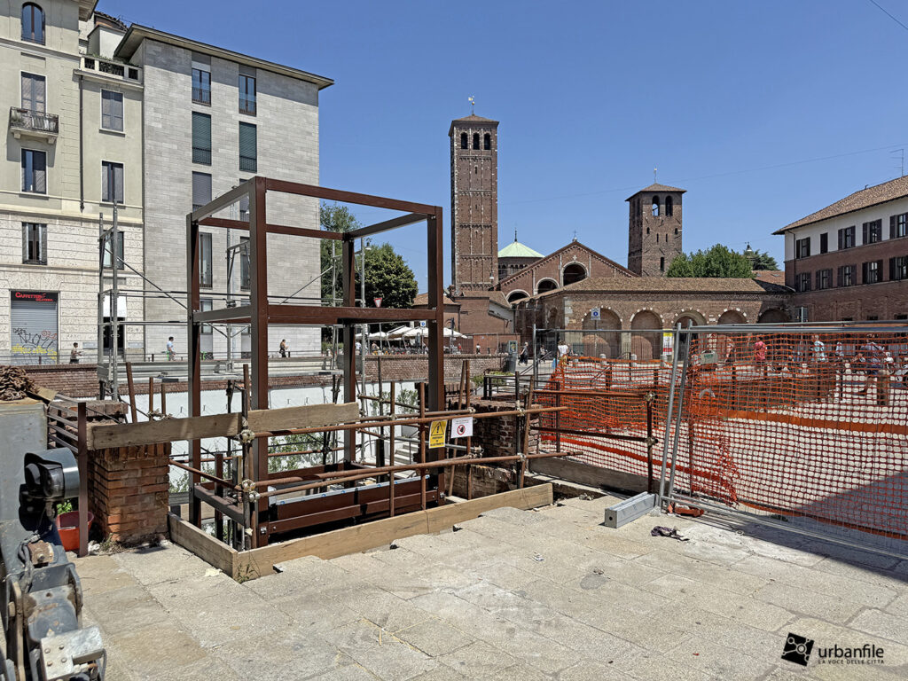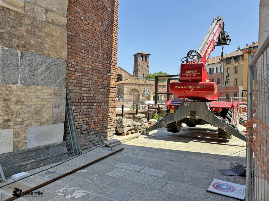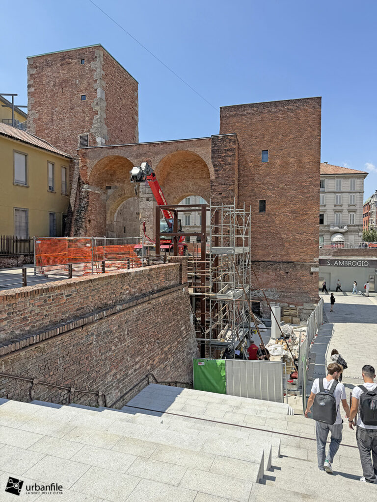 A fine giugno sono cominciati i lavori per instalalre la torretta dell’ascensore nei pressi dell’antica Pusterla di Sant’Ambrogio.
