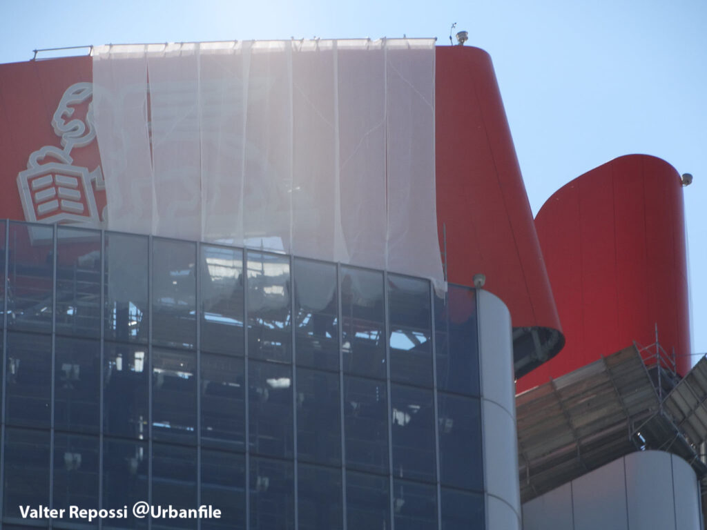 A circa un mese (era il 30 giugno) dal collasso di parte dell’insegna Generali posta sulla vetta della Torre Hadid — conosciuta anche come Lo Storto — sede del gruppo Generali, da una settima sono in corso le operazioni per la rimozione delle due insegne.