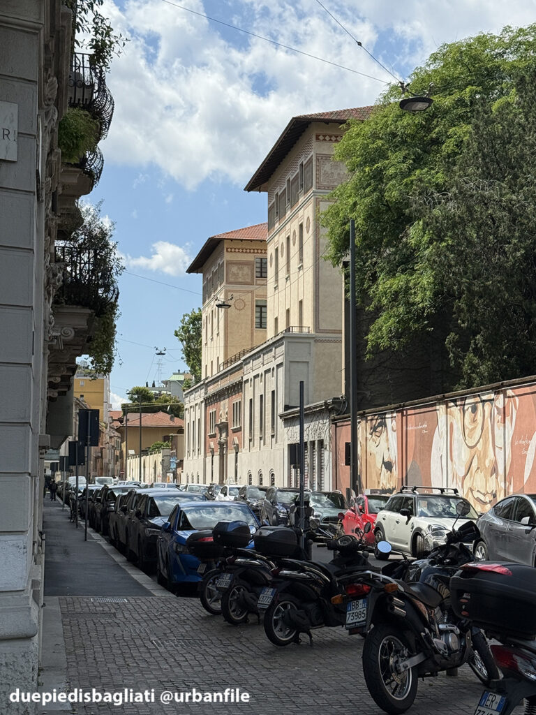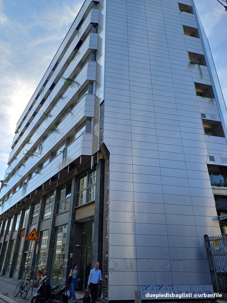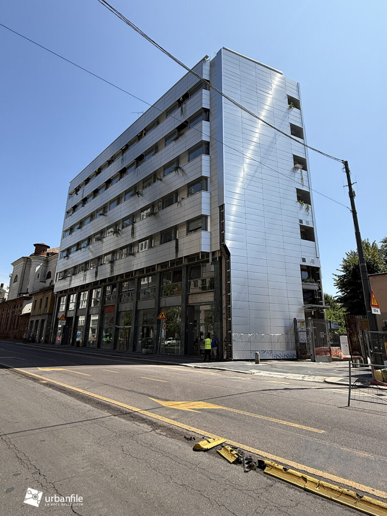 Procedendo lungo via Santa Sofia, l’edificio al civico 9, di proprietà dell’Università degli Studi di Milano Statale, è in fase di ristrutturazione da oltre un anno. Si trattava di un edificio privo di armonia con l’antica chiesa adiacente e con il contesto urbano, caratterizzato da costruzioni più basse su questo lato. Realizzato nel 1958 su progetto dell’architetto Ermenegildo Soncini come hotel, è attualmente in cantiere e sta subendo un intervento di coibentazione con nuovi pannelli. Difficile dire se il risultato finale sarà migliore o peggiore della situazione precedente.