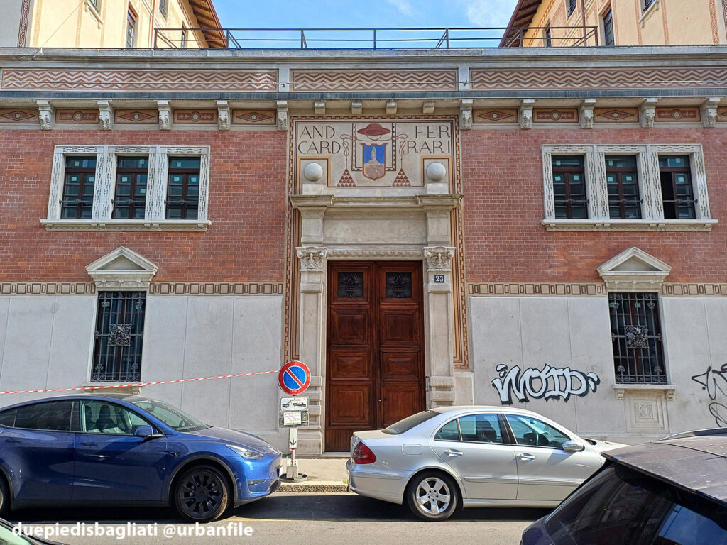 Si tratta del bell’edificio sorto come Pensionato Cardinale Ferrari nel 1923 su progetto di Cesare Nava. L’edifici passò quindi all’università Statale che ne fece il dipartimento di Lingue e Culture Contemporanee.