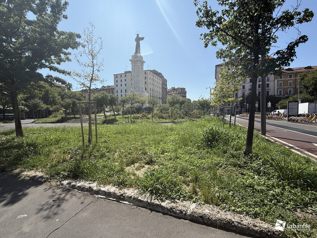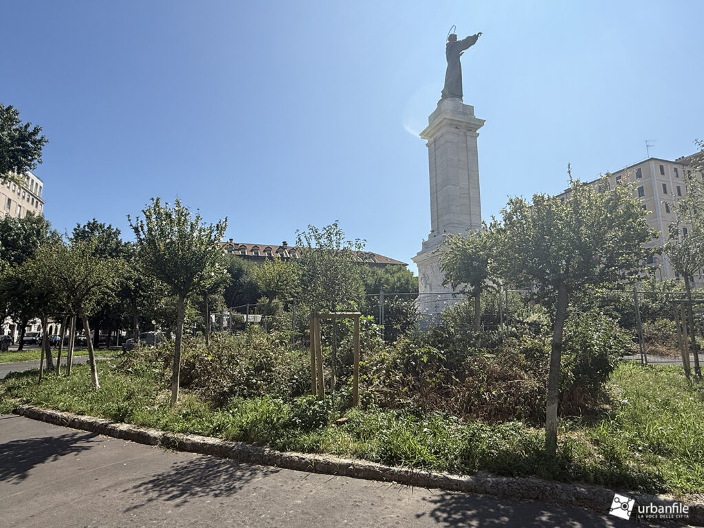 Va però segnalato lo stato di abbandono delle aiuole circostanti: l’erba non viene tagliata, le erbacce crescono ovunque, coprendo persino i cespugli di rose. Una manutenzione del verde più attenta sarebbe auspicabile, considerando che ci troviamo in piena città e non in aperta campagna.