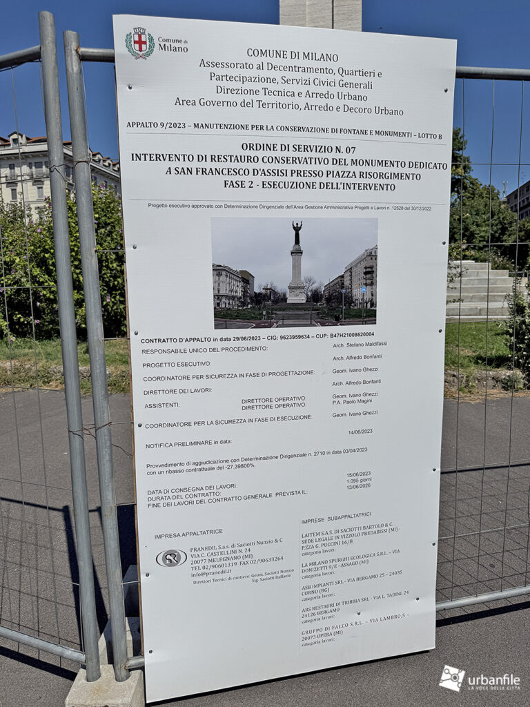Sono iniziati lo scorso novembre i lavori di restauro conservativo del monumento dedicato a San Francesco d’Assisi, situato in piazza Risorgimento a Porta Monforte. Ora il monumento è tornato a splendere, con la sua candida colonna in travertino chiaro e il bronzo perfettamente lucidato.