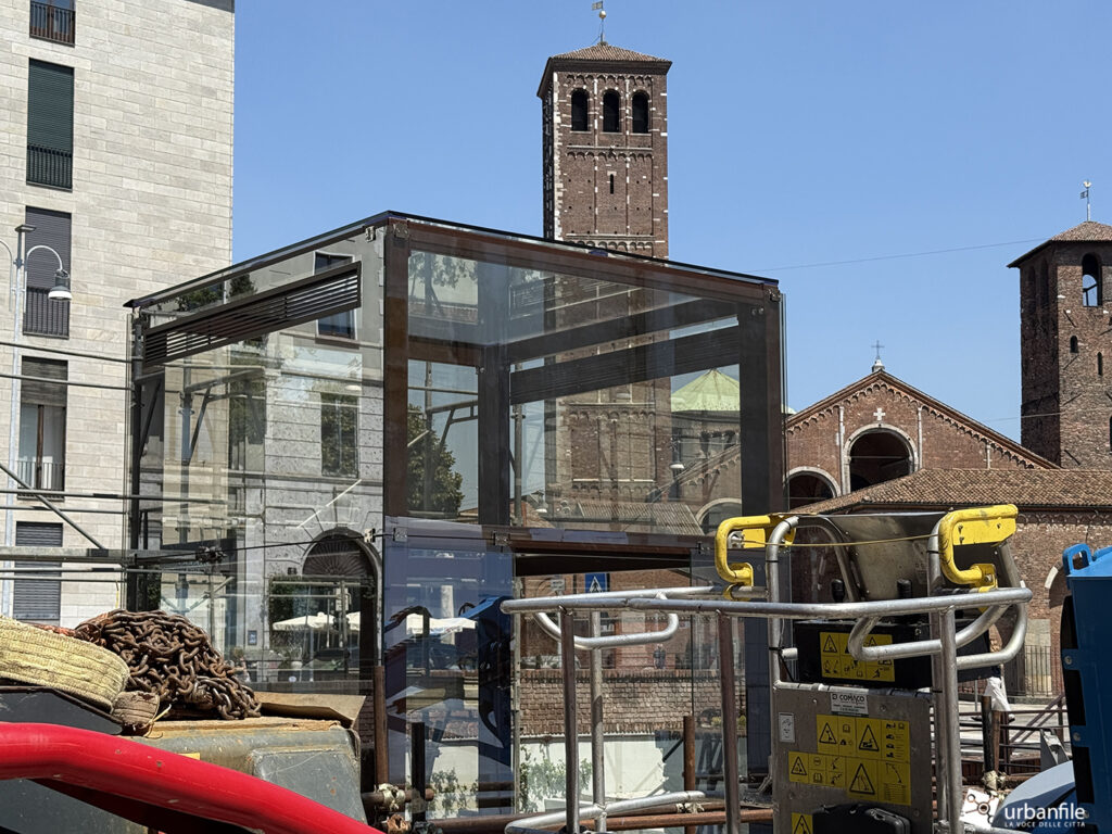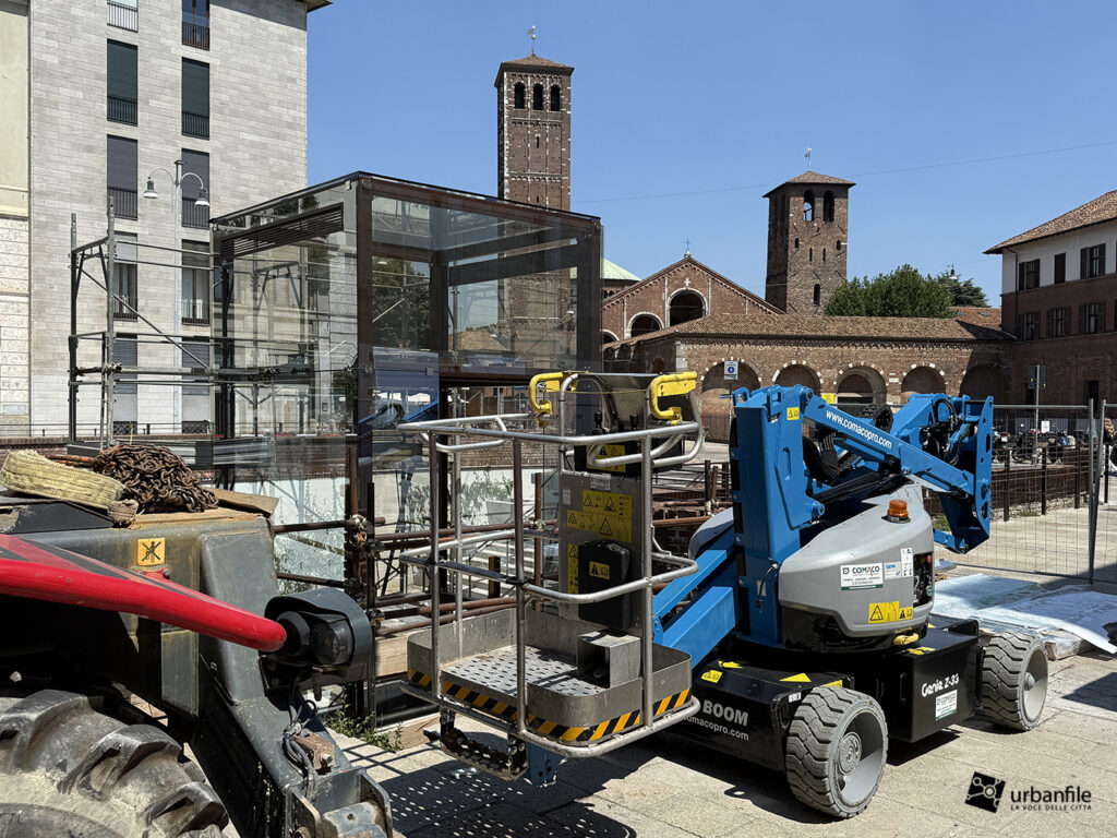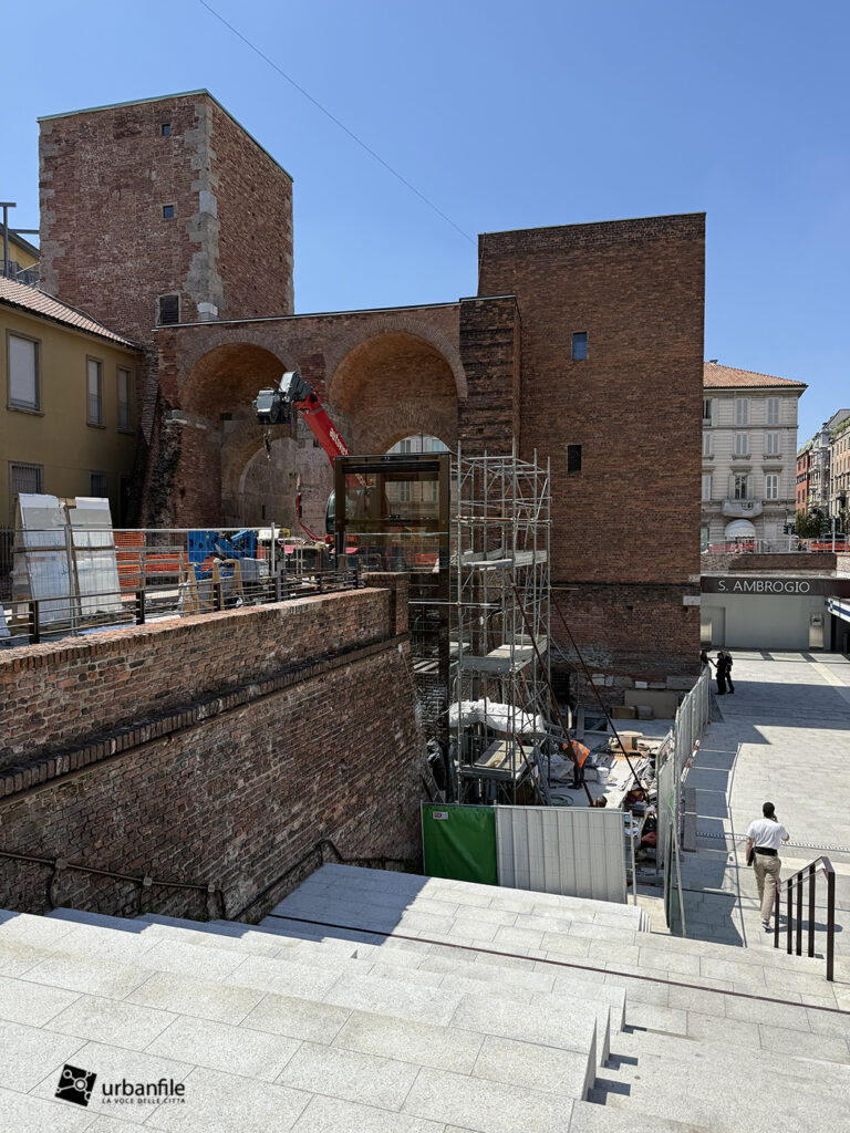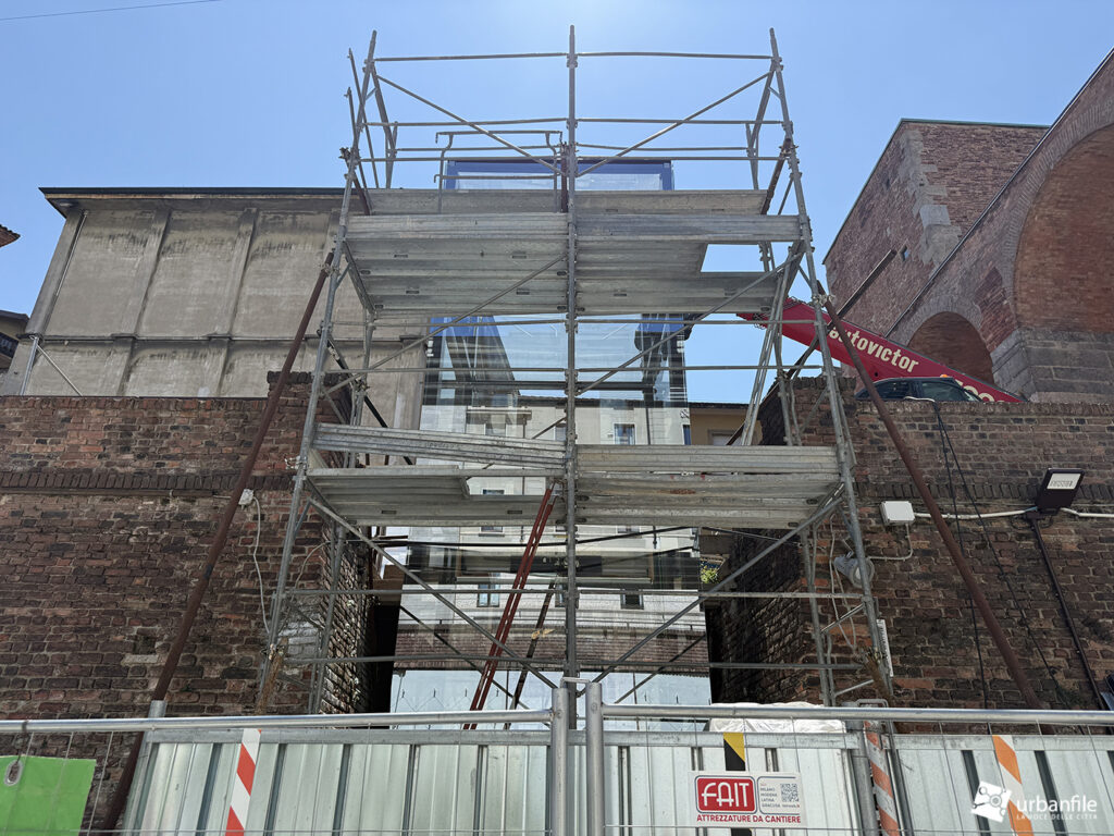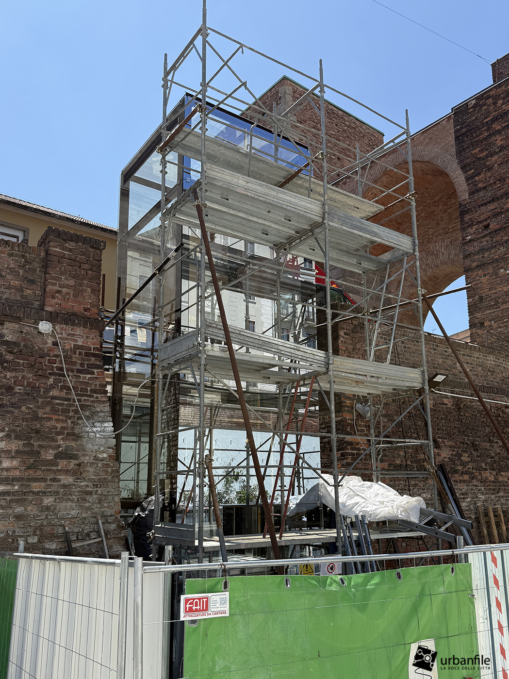 A fine giugno sono cominciati i lavori per instalalre la torretta dell’ascensore nei pressi dell’antica Pusterla di Sant’Ambrogio.