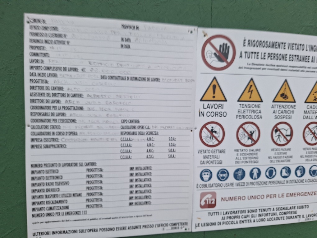 Da cartello lavori fuori dal cantiere, la committenza risulta “I.F.I.P. – INIZIATIVE FINANZIARIE IMMOBILIARI PADOVA – SOCIETA’ A RESPONSABILITA’ LIMITATA” e la società esecutrice dei lavori “COSTRUZIONI INDUSTRIE EDILI S.R.L.”, entrambe della stessa sede di Milano, anche se, come anticipato, nel 2021 le quote di IFIP siano state acquisite dalla “Industrie Edili Holding”.